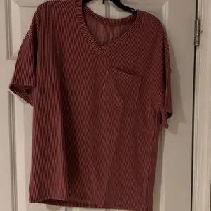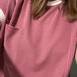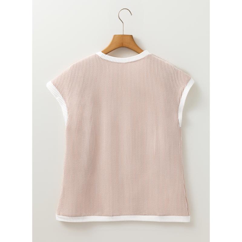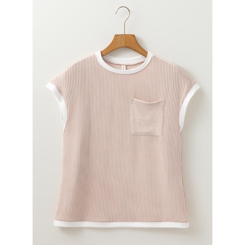·It has a short sleeve crewneck and textured ribbed knitwear fabric.