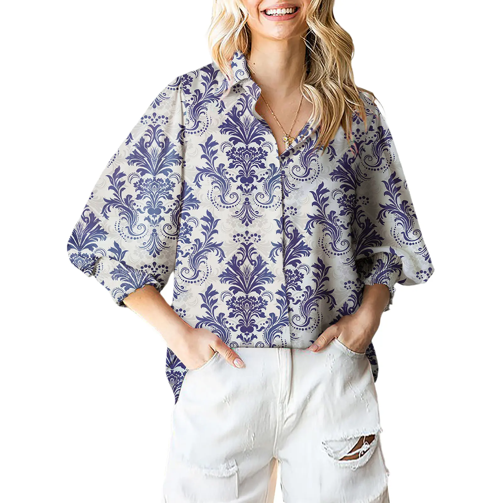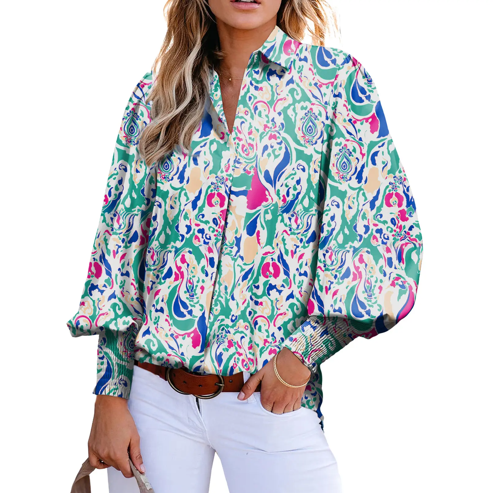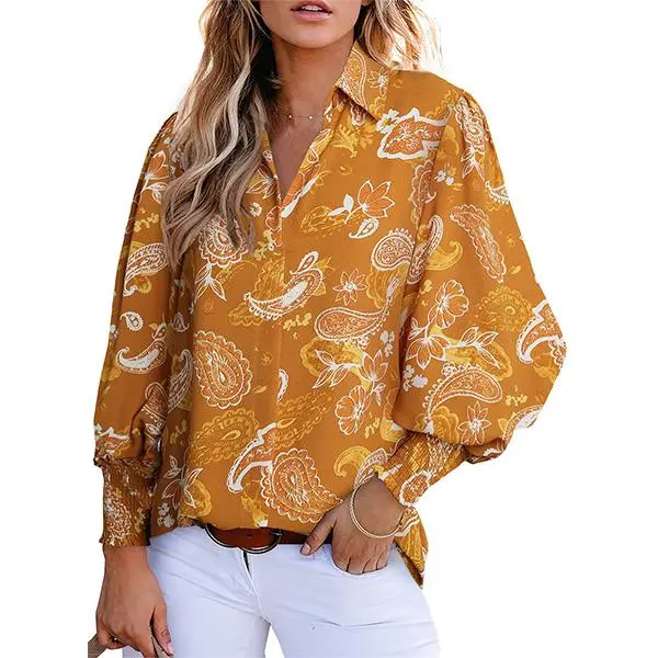 ✨ EVALESS Women's Casual Spring Shirts are perfect for 2025 trends. These loose fitted V-neck blouses feature lantern long sleeves. The paisley graphic floral print adds a boho vibe. Ideal for travel, work, and casual outings. 🌸