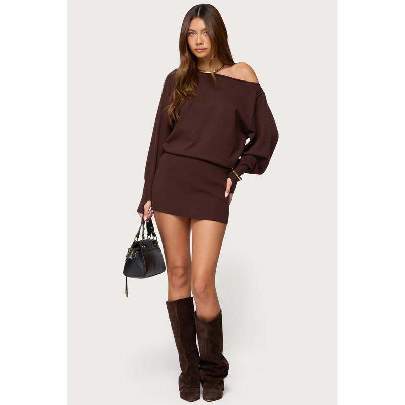 Edikted Eve Off Shoulder Knit Mini Dress 😍✨ Dark Brown Cozy & Sexy Fit 💎 Hashtags: #Edikted #MiniDress #WinterOutfit #DateNightLook #TikTokShopFinds 📝 Caption: This off-shoulder knit mini dress is giving cozy but HOT 😮‍💨🤎 Soft sweater material, snatched fit, and perfect for winter date nights ❄️✨ Dress it up with boots + a cute coat and you’re ready 😍🔥 Simple, classy, and super flattering 💯🛍️@Muna Gurung
