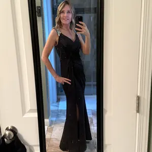 Love this dress❤️❤️❤️ wore it for an wedding in Mexico it was just an little long but overall it was beautiful and the glitter doesn’t transfer at all