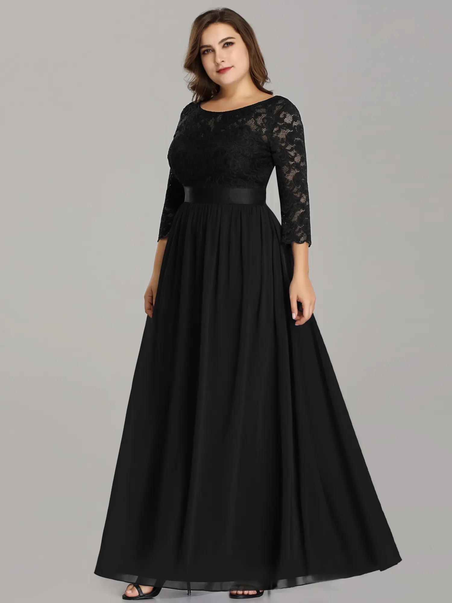 When the occasion calls for a chic and elegant look, go in for this flowing see-through lace evening dress. The sophistication of this evening dress is amplified by its lace bodice and sleeves, making it a standout choice for any special event.