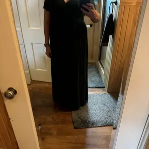 This dress is gorgeous in person!! And it has a nice weight to it - it definitely isn’t cheaply made! Zero wrinkles upon arrival and according to the tag, it’s machine washable and dryable! I’m 5’9” and it hits the floor, which is very rare for me!! I LOVE it! Also, hides the mom pooch perfectly.