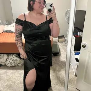 Beautiful and flattering dress! Fits TTS. 5’2 165-ish and got a large