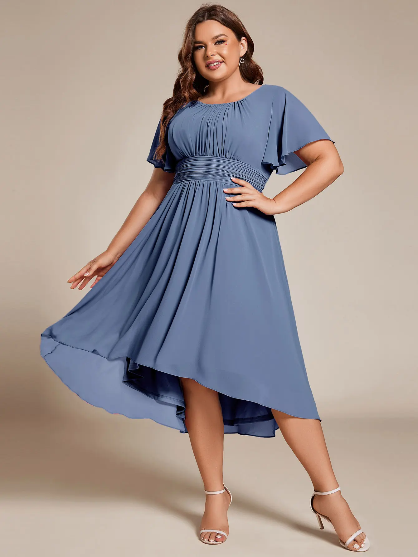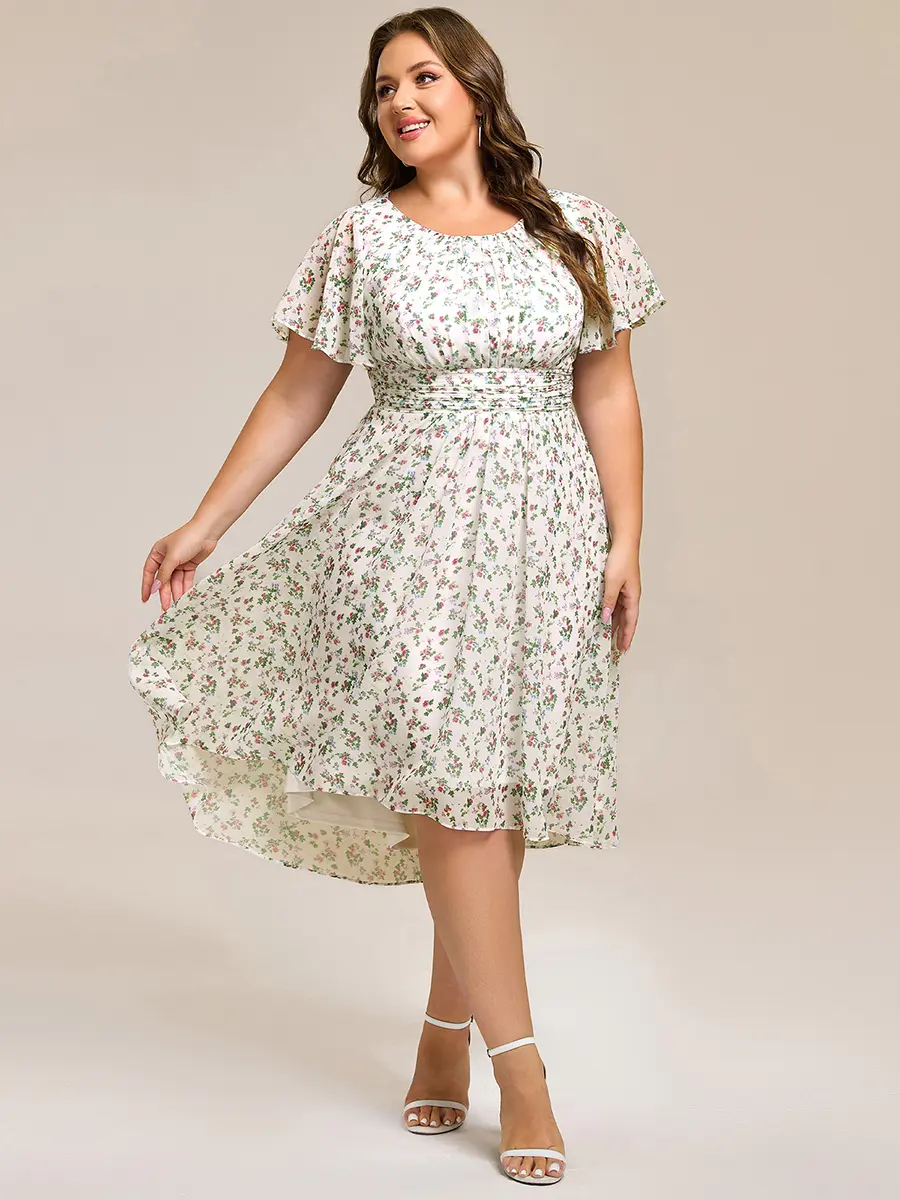Get ready to make a statement at any wedding with our Ever-Pretty Chiffon Wedding Guest Dress. This elegant dress features a flowy A-line silhouette and a flattering knee-length cut.