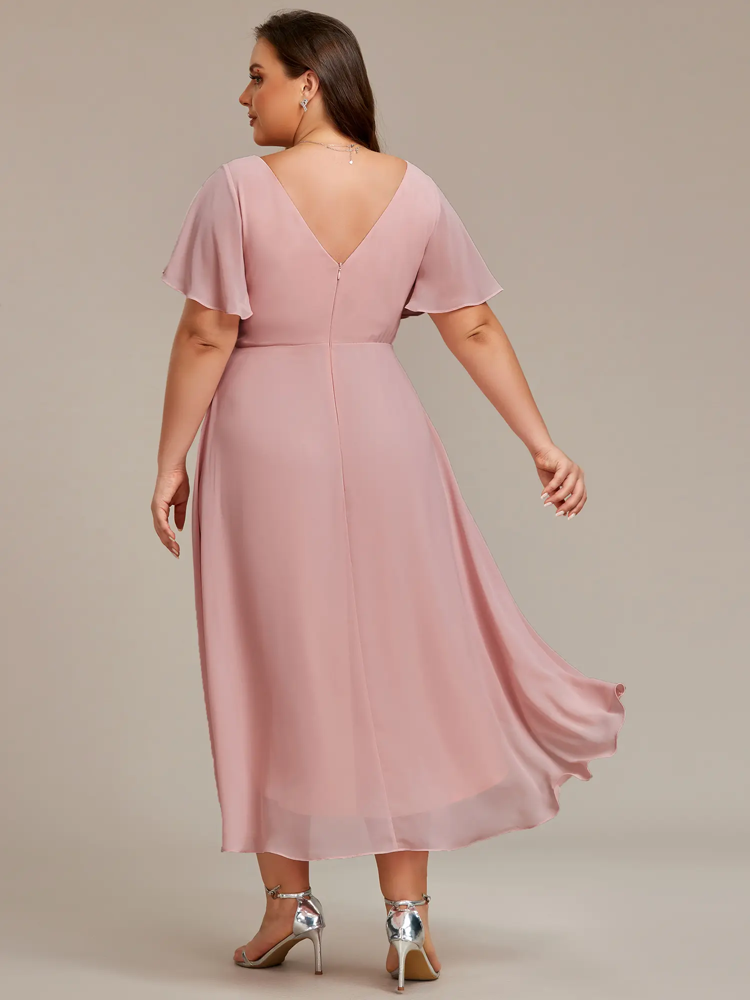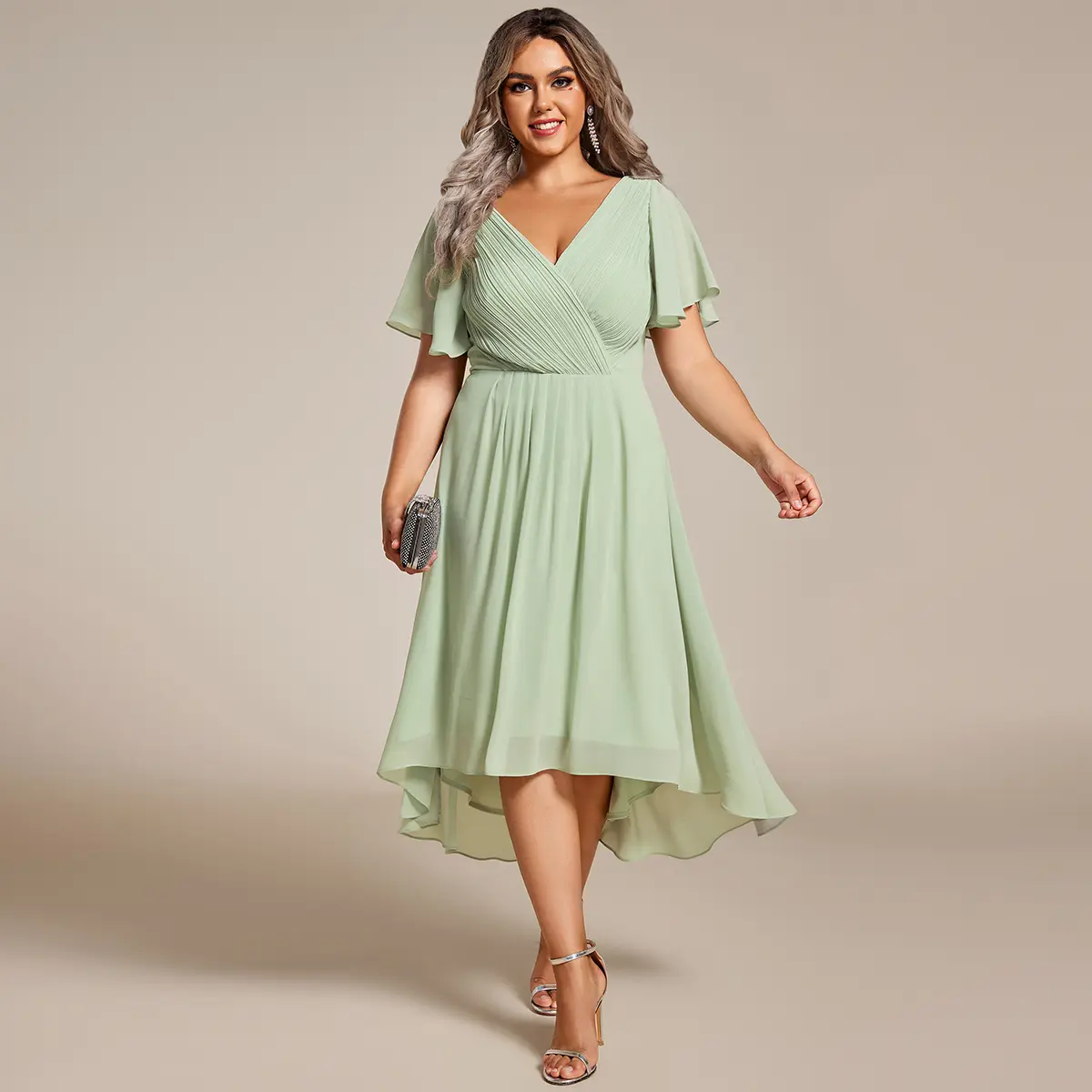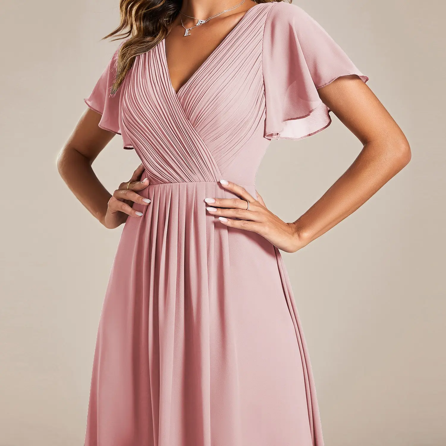Elevate your wardrobe with the Ever-Pretty Chic V Neck Asymmetrical Hem Ruffles Sleeve Pleated Chiffon Wedding Guest Dress. This elegant dress features a V neck, ruffled sleeves, and pleated chiffon material for a whimsical charm. Perfect for romantic garden weddings, it offers a stylish yet classic look. The short sleeves and A-line silhouette make it suitable for any occasion.