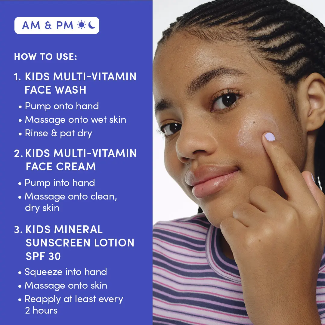 • Multi-Vitamin Face Wash: gentle daily cleanser for kids’ developing skin
