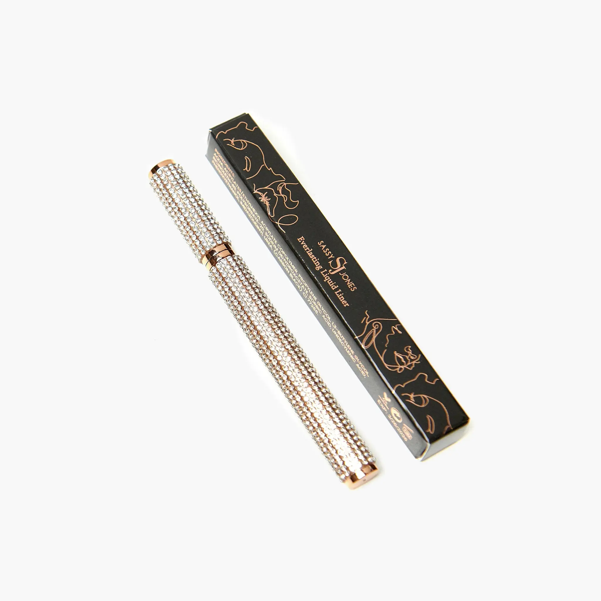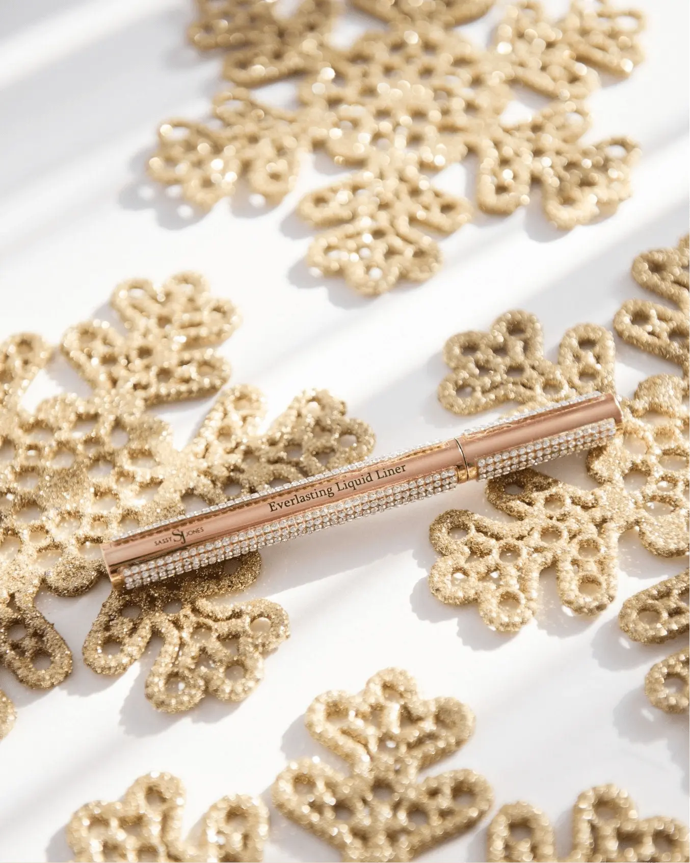 Your cat eye has never been easier, babe trust us. This everlasting liner features a flexible felt tip in a powerfully pigmented black that glides on effortlessly. Our rose gold and crystal encrusted pen adds a pop of sparkle to stand out in your make-up bag. Glide on this luxe liner and slay the day. Thank us later.