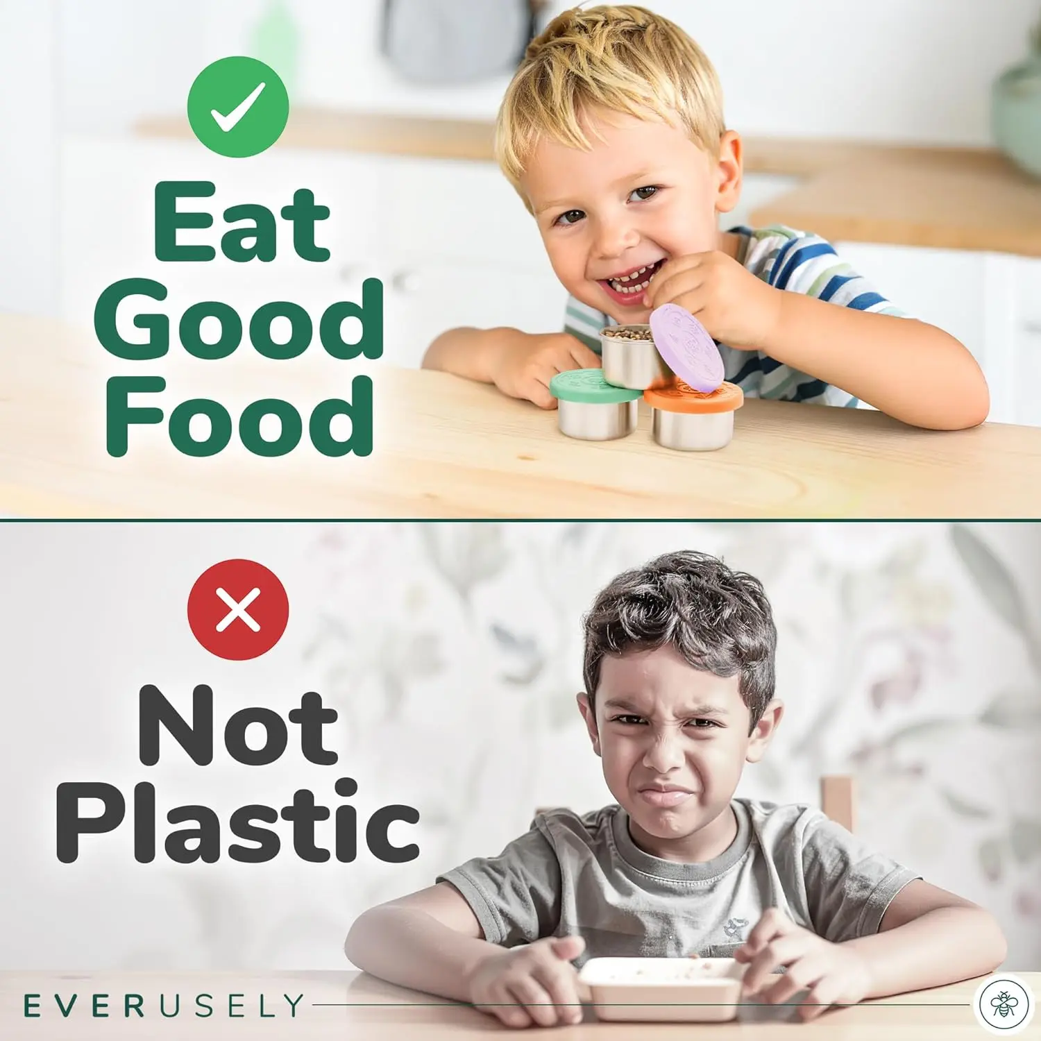 Keep sauces, dressings, and snacks perfectly packed and spill-free with our stainless steel condiment cups. Designed for busy families and anyone who packs meals on the go, these mini containers are compact, durable, and cleverly color-coded so you always know what’s inside.