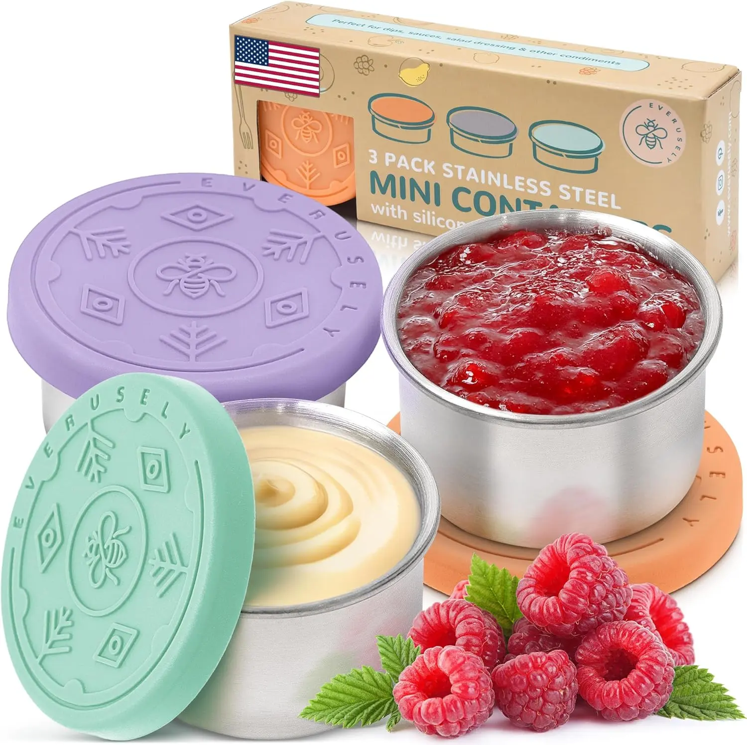 Made from premium 304 stainless steel with soft, food-grade silicone lids, they’re a safe, eco-friendly alternative to disposable plastic sauce cups.
