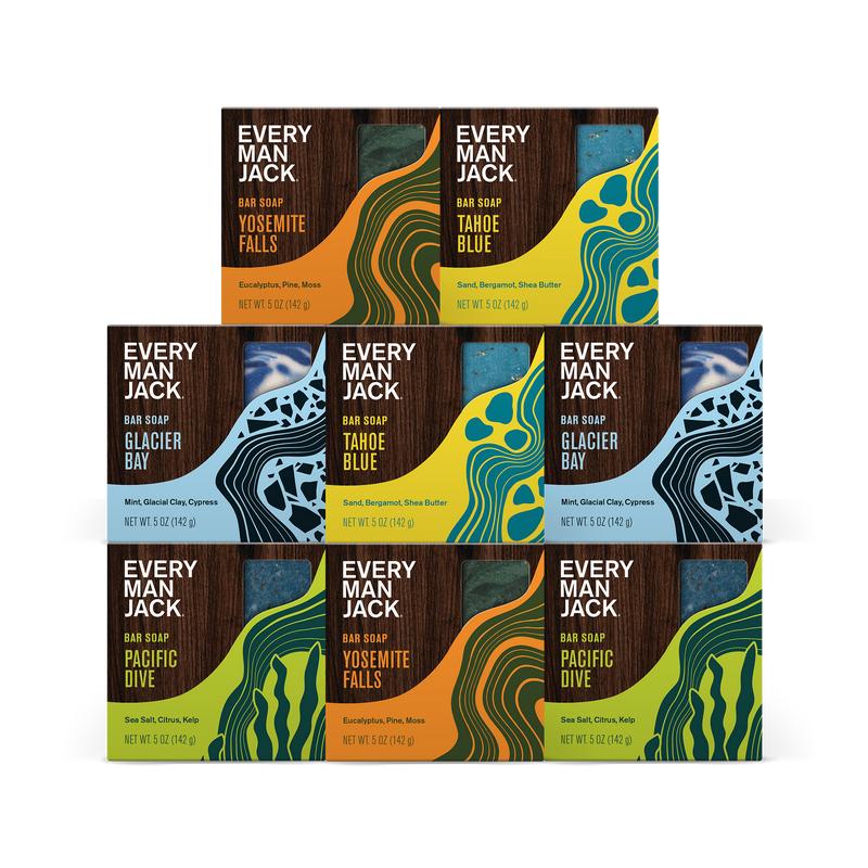 5. Every Man Jack Cold Plunge Mens Bar Soap Set - Deeply Cleans, Hydrates with Naturally Derived Ingredients - Iconic Cold Water Scents - Pacific Dive, Glacier Bay, Tahoe Blue, Yosemite Falls, 8 Bar Set Body Care
