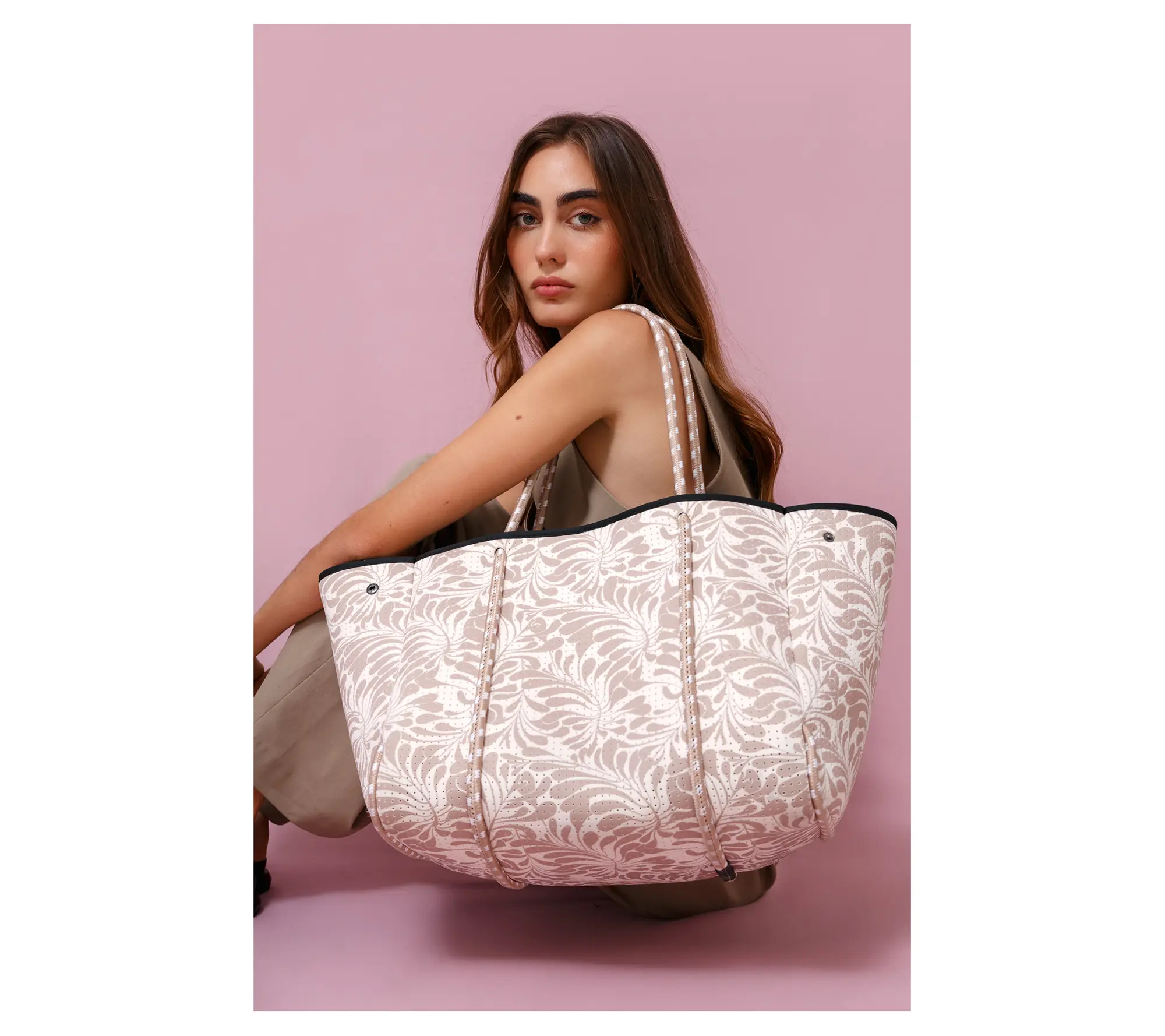 Embrace versatility and style with the Pop Ups Brand Everyday Neoprene Tote, your go-to bag for work, gym, beach, and travel. This oversized yet lightweight tote is crafted from luxe perforated neoprene, featuring soft sailing rope handles for comfortable carry. It's water-resistant, breathable, and comes with a detachable essentials pouch, making it the perfect blend of functionality and effortless style. From Pop Ups Brand.