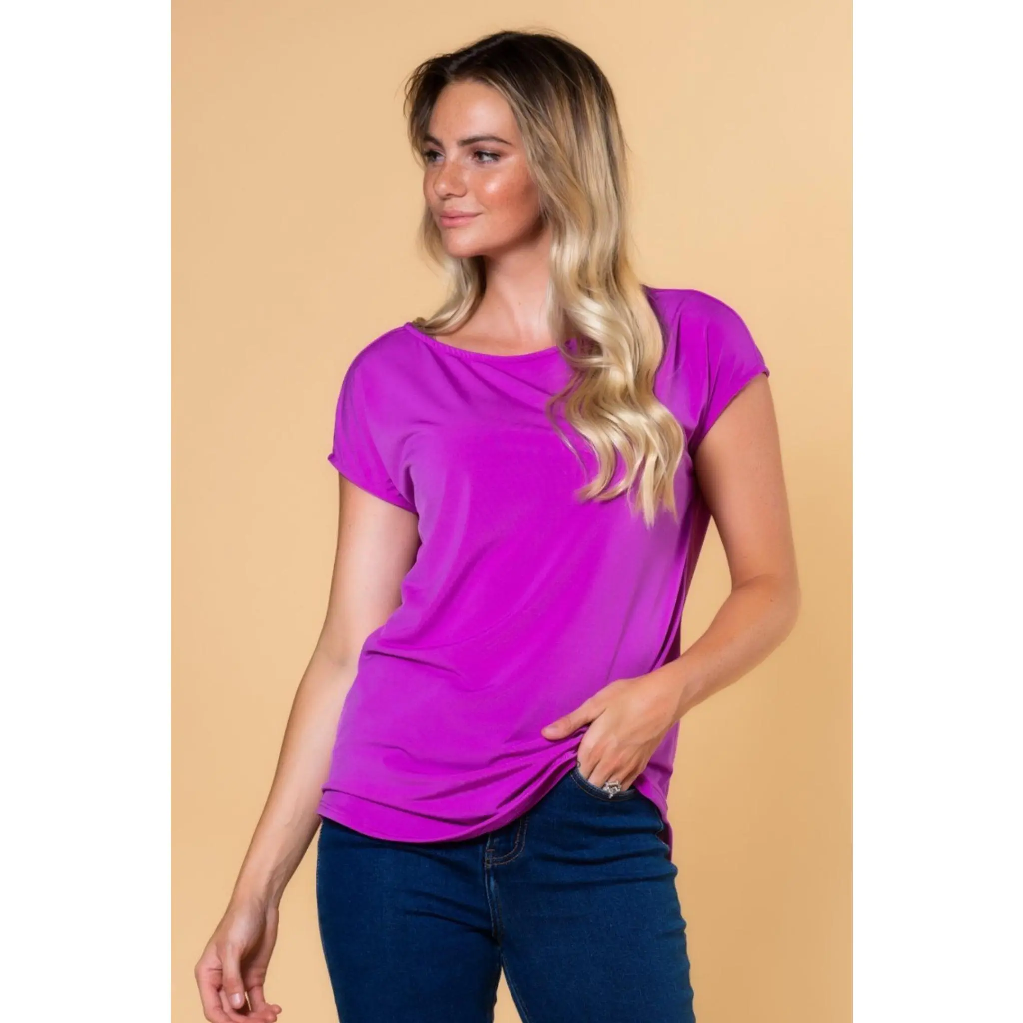The Everyday Tee features a modest boat neckline that adds a touch of elegance to the classic tee silhouette. The relaxed fit drapes beautifully without clinging, while the slightly curved hem creates a flattering line whether you wear it tucked, untucked, or half-tucked. Made from our signature wrinkle-free fabric, this tee looks freshly pressed straight from the drawer, suitcase, or gym bag. No ironing required, ever.