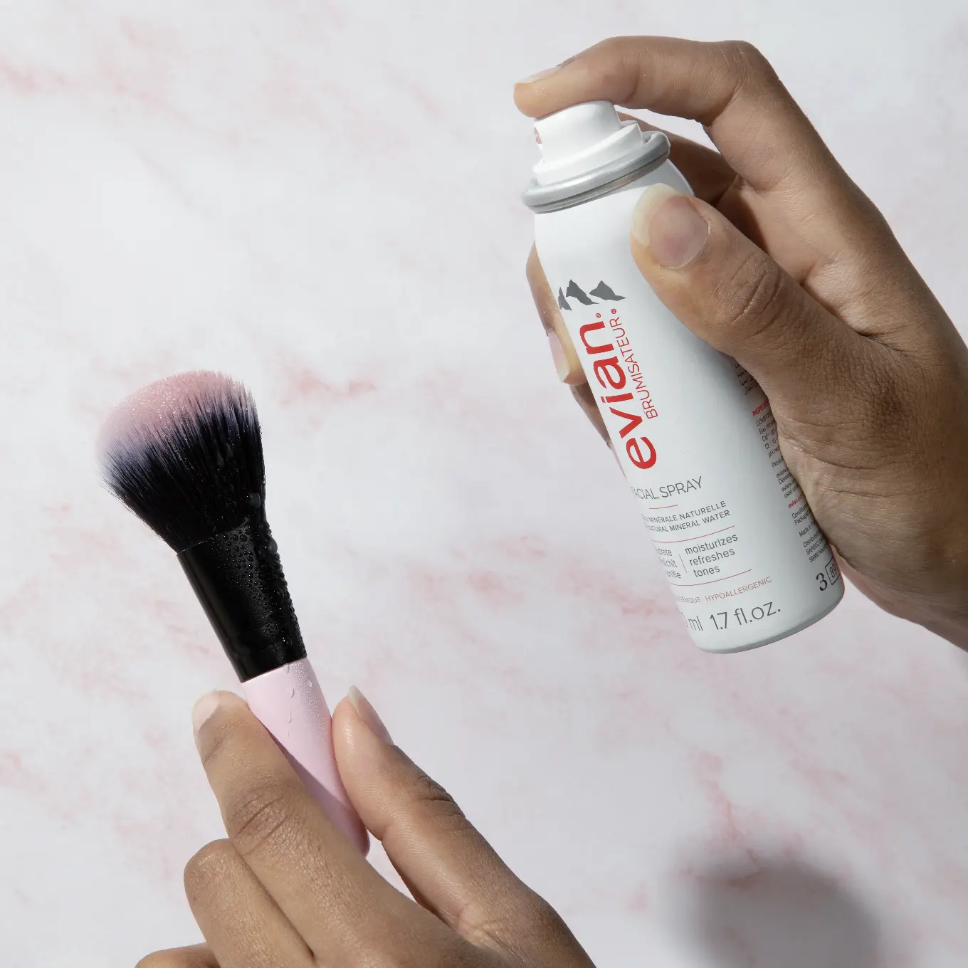 ·Spray brushes and sponges while applying makeup for bolder color and smoother blending.