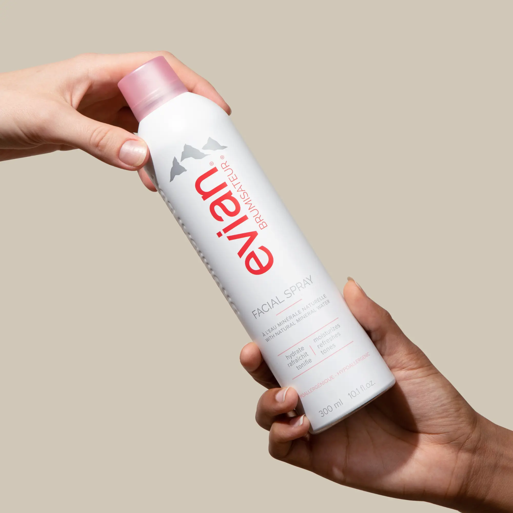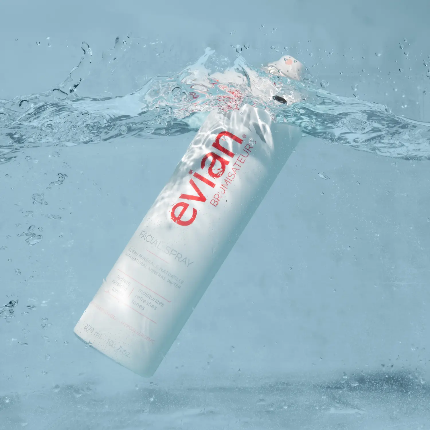 ·Mist generously with the classic Evian Facial Spray after cleansing and before applying moisturizer to improve skin's hydration
