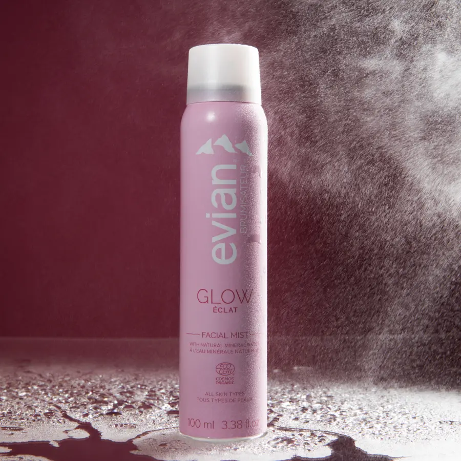 ·Spray lightly after applying makeup with Evian Glow Facial Mist to set powder cosmetics for super glowy finish