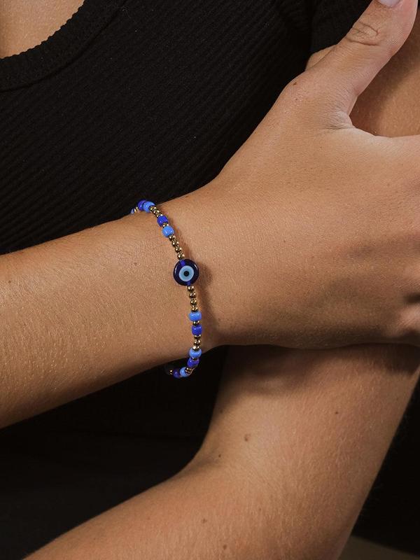 ·Measures 7.25" with 1.25" extender, 4mm colored beads, 3mm metal beads, 10mm evil eye beads