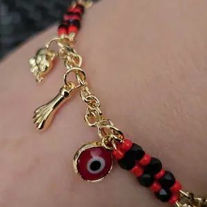 Estoy encantada de recibir este hermoso producto me encanto y tiene una calidad 100 y biene en una bella presentación una hermosa cajita la recomiendo a todo el que quiera tener una bella manilla con una bella proteccion