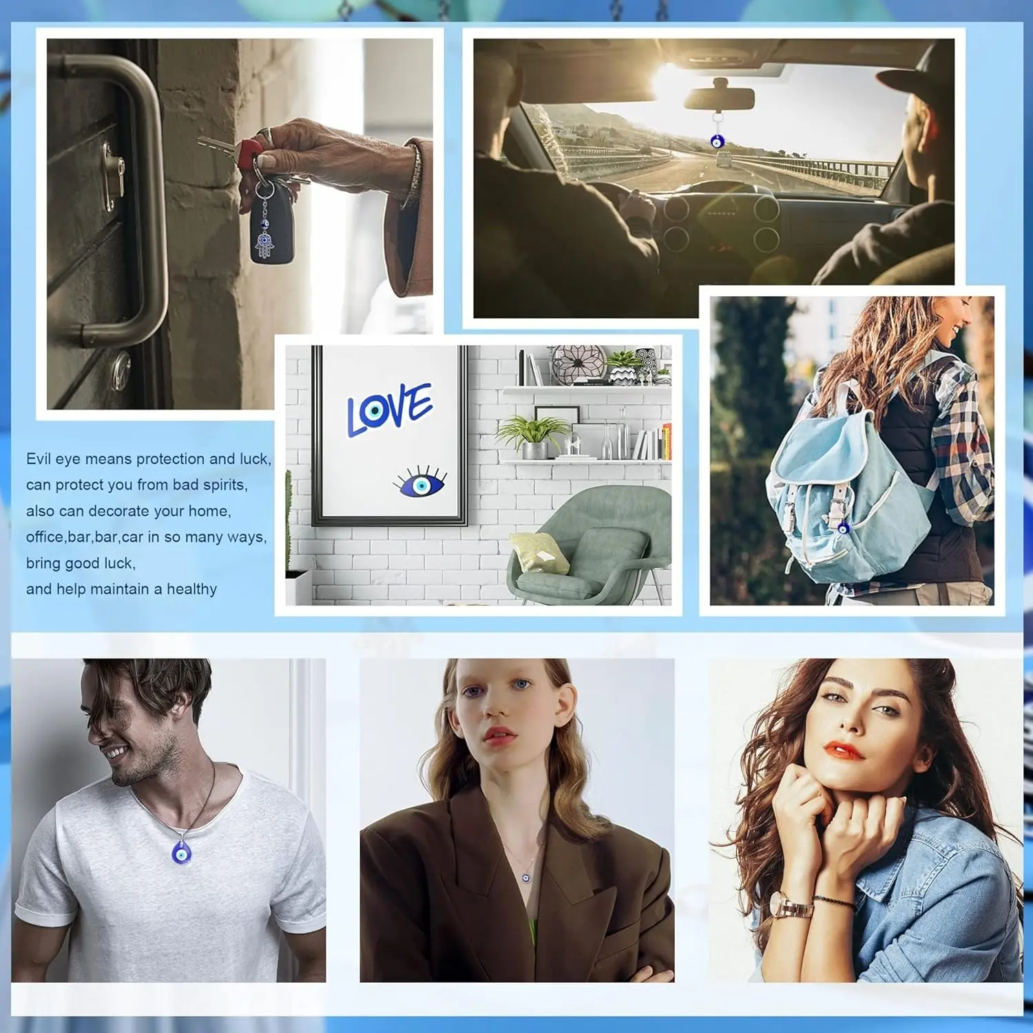 ·PERFECT GIFT CHOICE This evil eye necklace and bracelet are beautifully crafted and perfect for gifting your family, friends and colleagues, to express your best wishes and bring them good luck, you can also wear this evil eye necklace with your family, The evil eye sticker among them can also decorate various items at home with your family, they will be very happy.