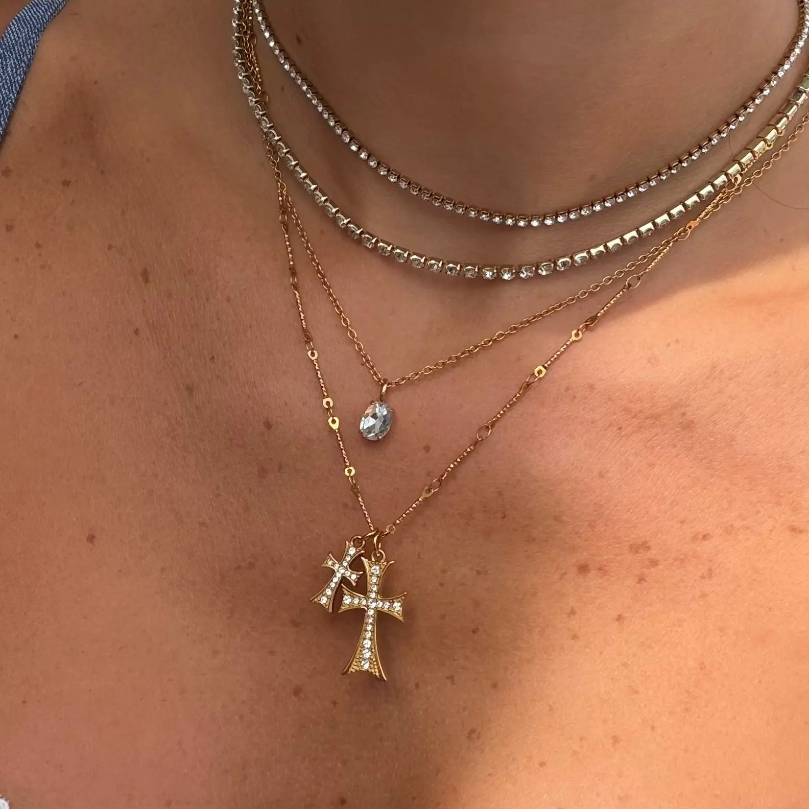if you're thinking ab buying- DO IT! i loveee this necklace it’s so cute, not too long or short it’s perfect to wear when layering. it’s durable and not at all cheap! love the pink gems in the crosses too 🥰 the way evry packaged the necklace so it wouldn’t tangle is 🤌🏼💋 above and beyond