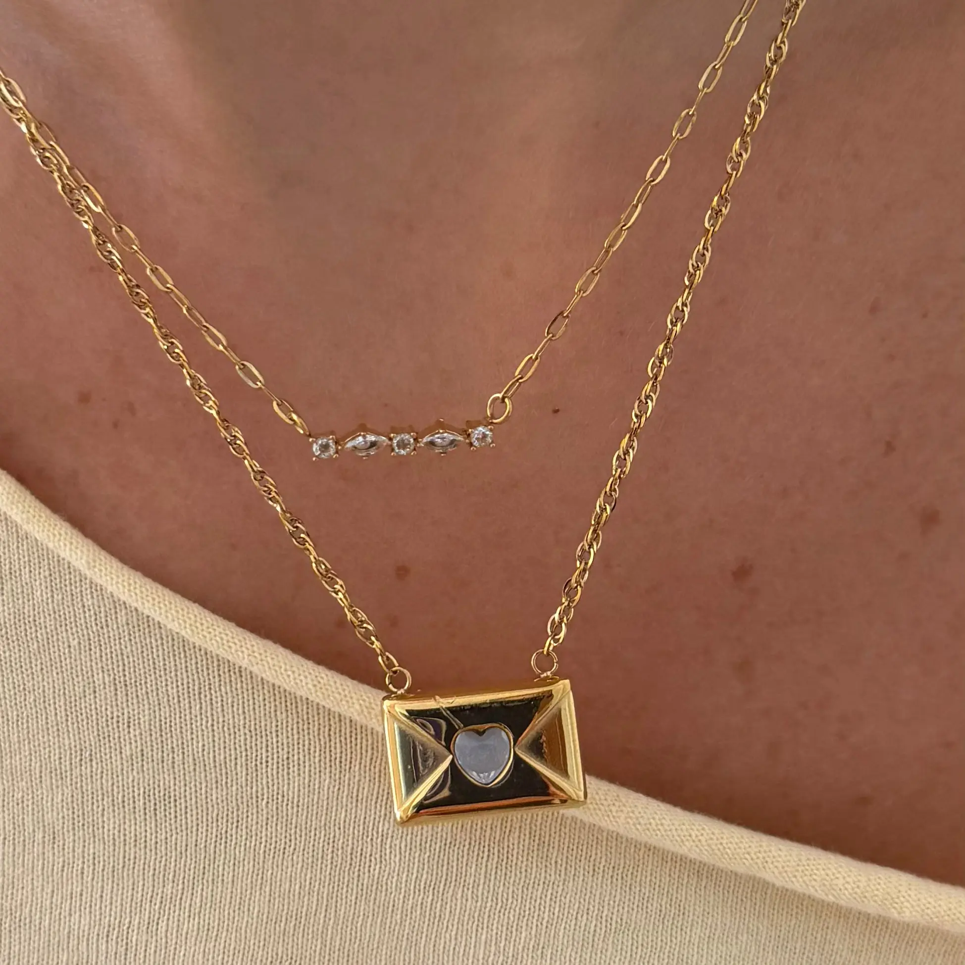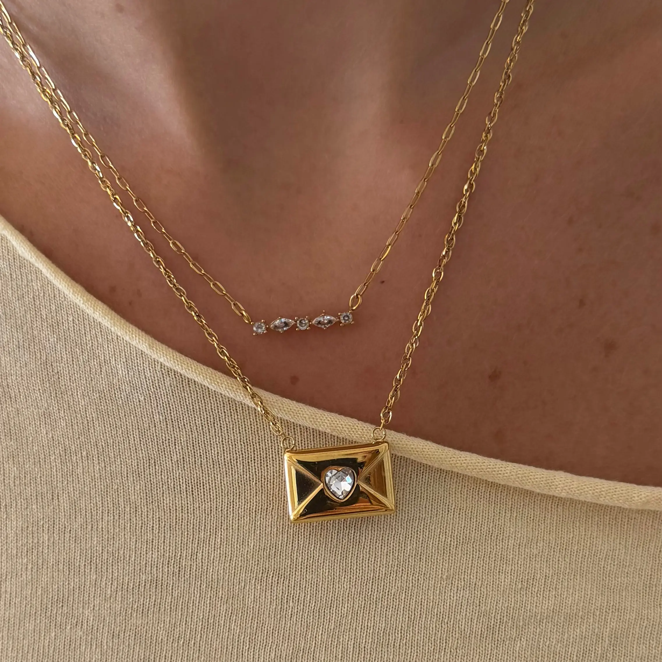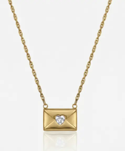 The Sweet Darling Necklace features a delicate chain finished with a tiny envelope charm and a sparkling CZ stone at the center. Feminine, dainty, and full of sweet detail, it adds the cutest touch of shine to your evryday look. A little love note you can wear close to your heart. ✨????