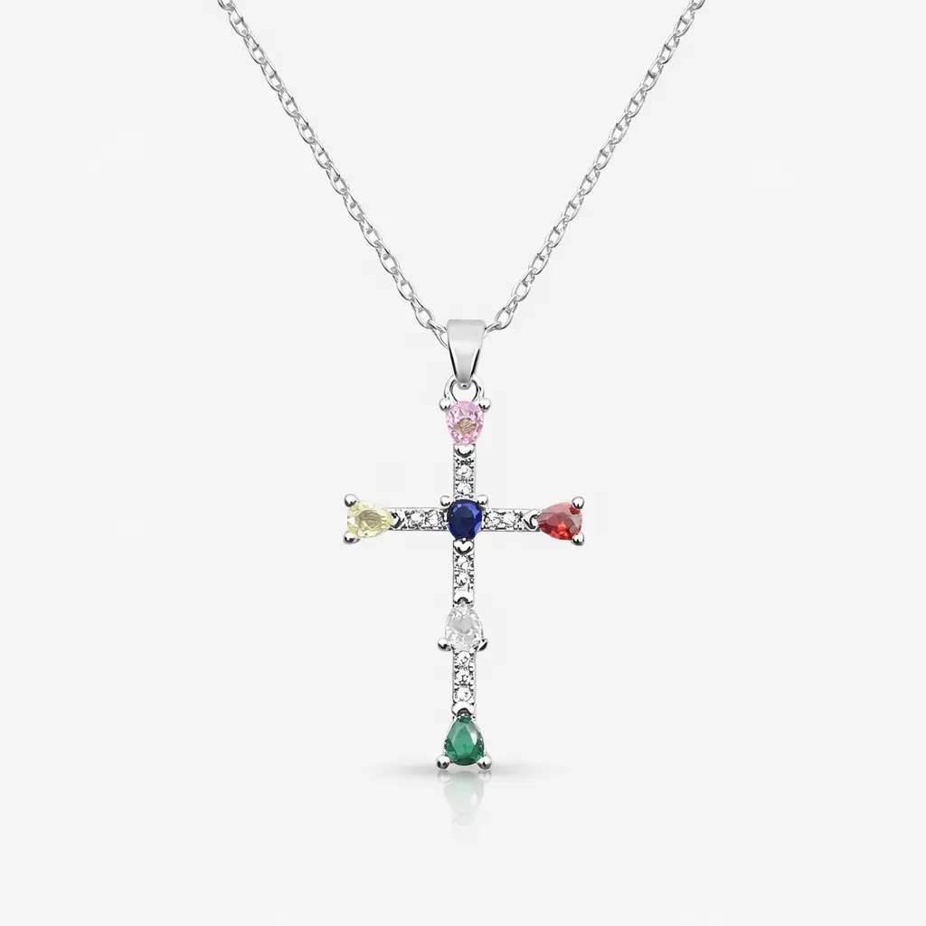 Brighten your day with the Rainbow Blessings Cross Necklace. This necklace features vibrant multicolor gemstones that sparkle with every angle. Perfect for adding a touch of elegance to any outfit.