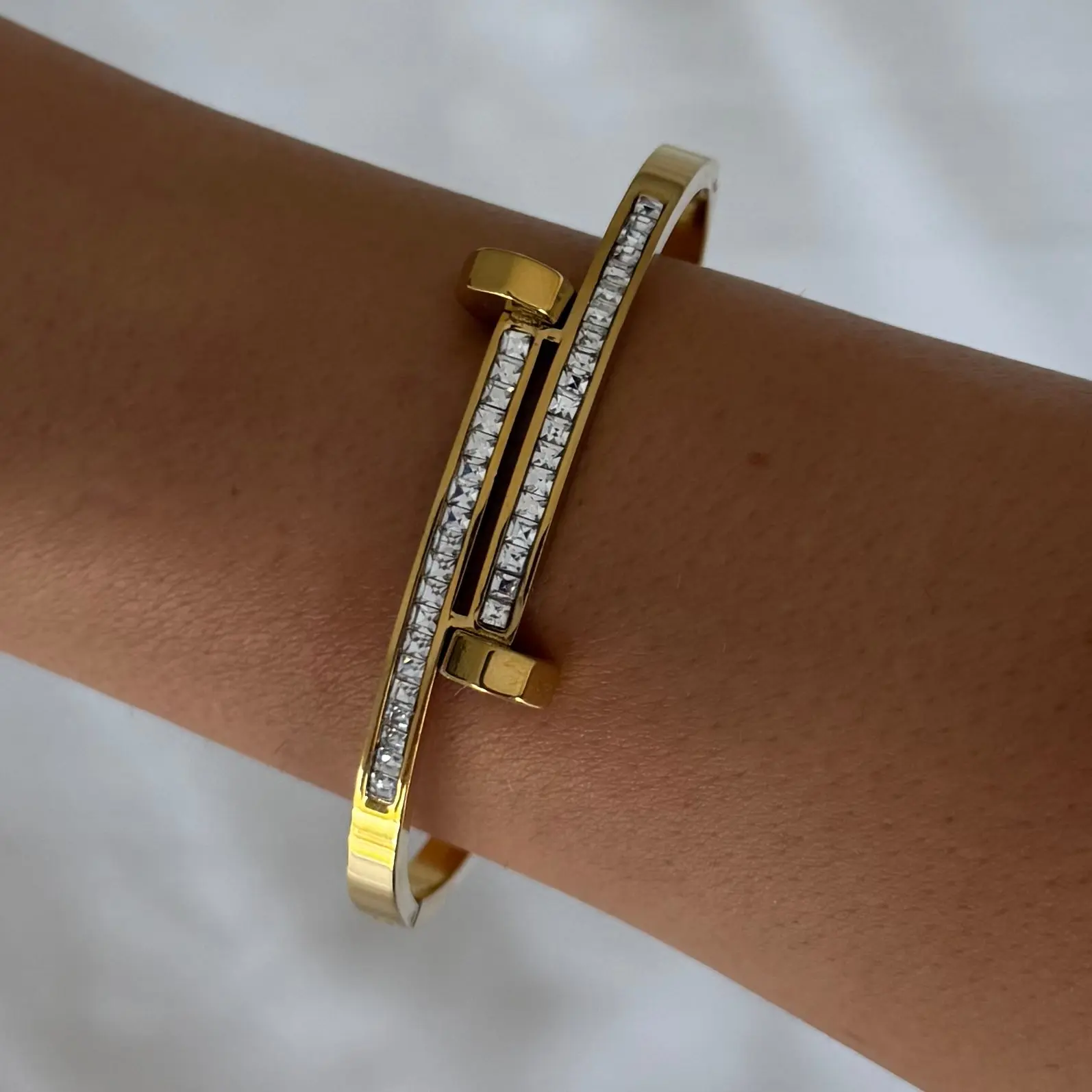 Glow mode: activated. The Radiant Row Bangle is lined with sparkly CZ stones that catch the light like crazy, giving you that effortless “I always shine” energy. Sleek, cute, and totally wearable with every fit, it's the kind of bracelet you put on once and suddenly can't live without. ✨