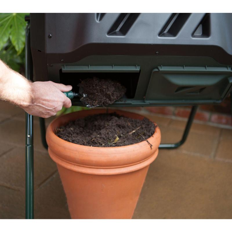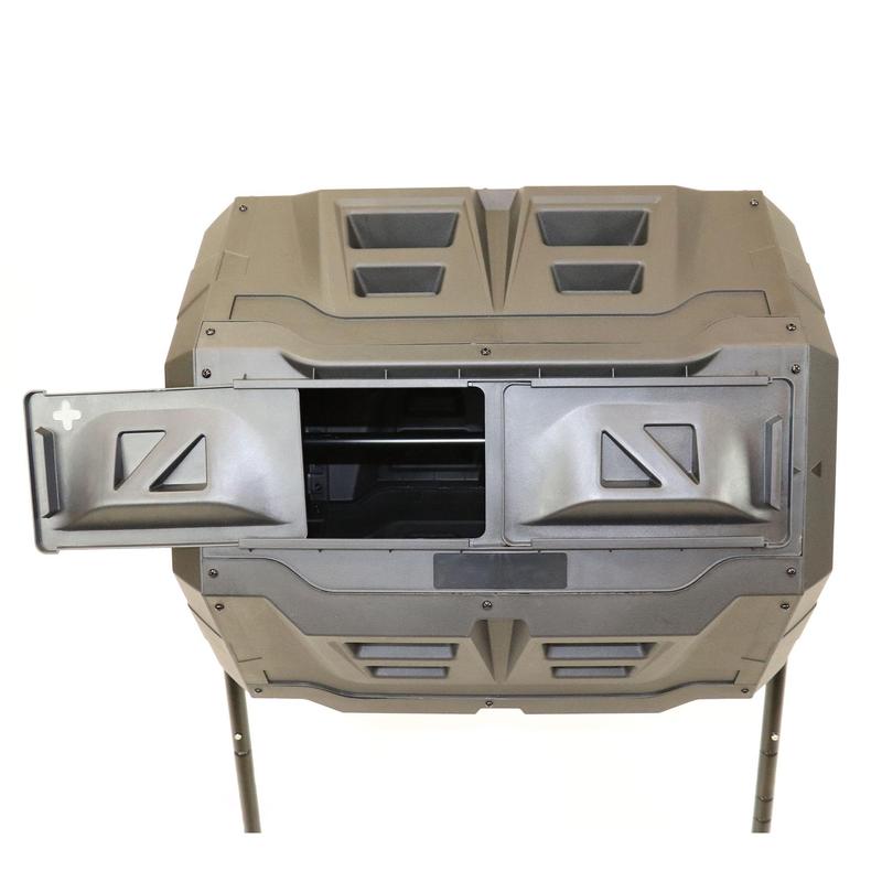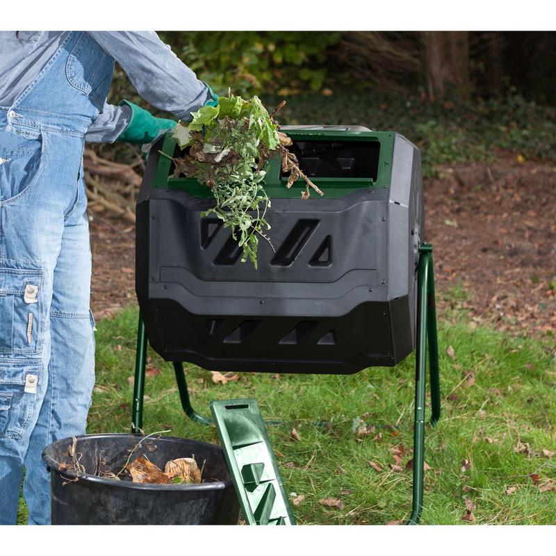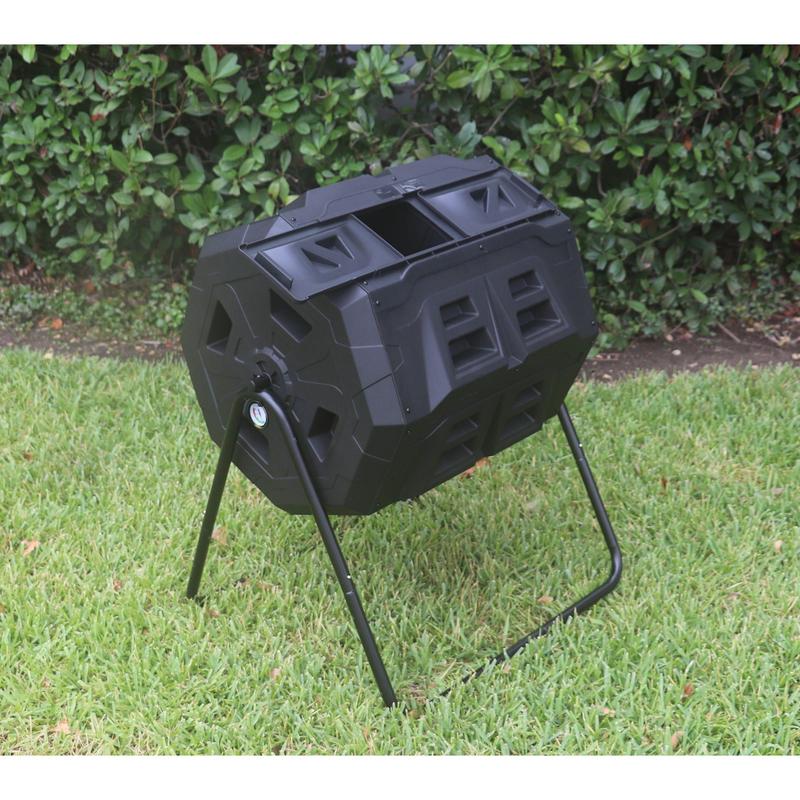 Easily convert yard waste into rich compost with this backyard tumbler boasting a large capacity and two chambers. From Exaco.