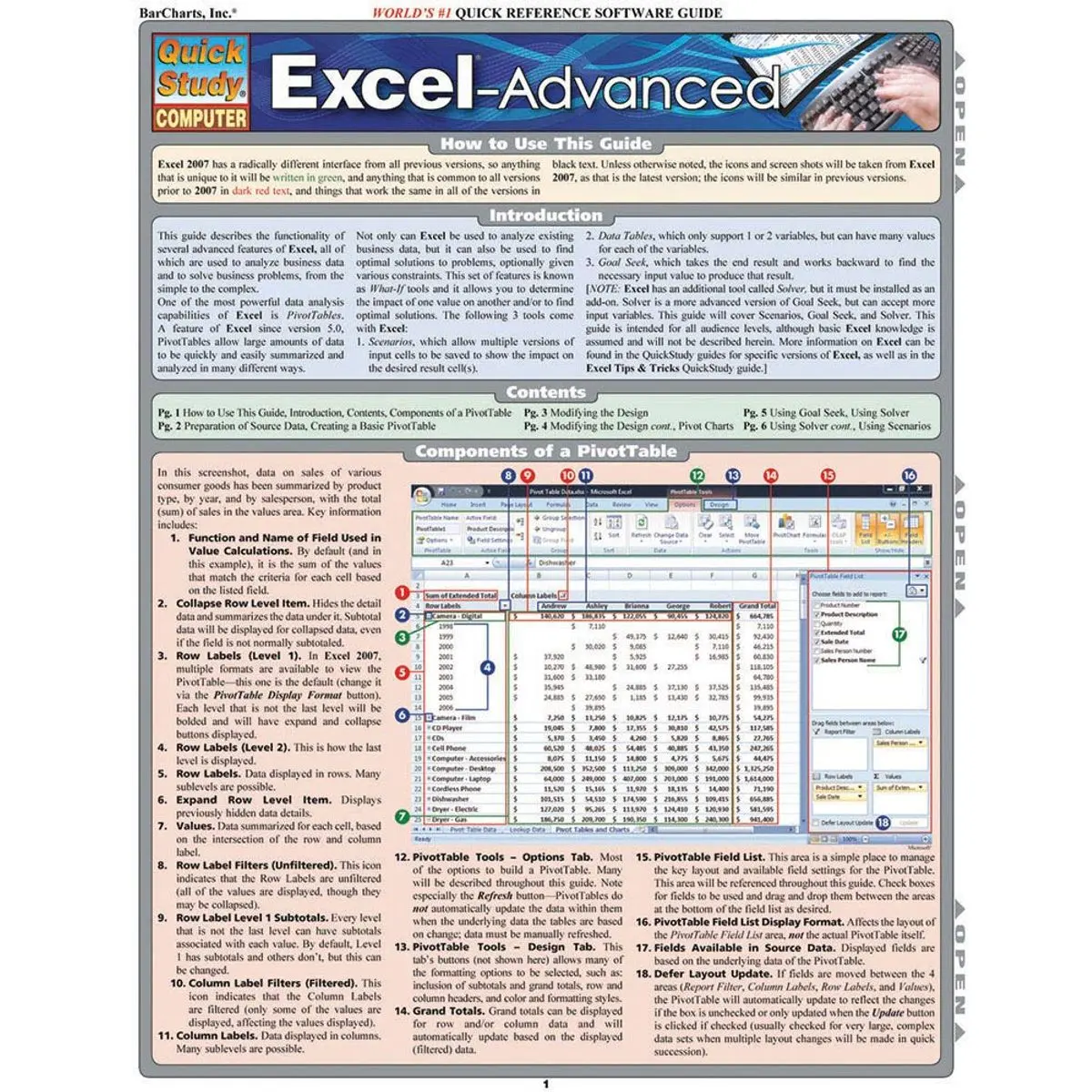 This 3-panel (6-page) guide is a must-have for Excel users who have mastered the basic concepts of the program. It is designed to help users take their skills to the next level. The guide is color-coded to refer to all versions of Excel, as well as information specific to Excel 2007 and earlier versions. This makes it a versatile tool that can be used by users of all levels.