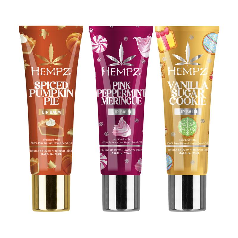 Pucker up this fall & holiday season with our triple threat exclusive lip set—leave a kiss of sweet pumpkin, sugar cookie, & pink peppermint. Infused with 100% hemp seed oil, it soothes and nourishes, keeping lips soft and moisturized on the go. 0.44-fluid-ounce tube.