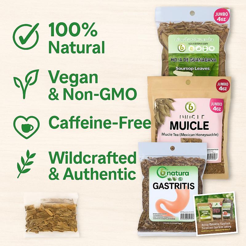 ·Selección curada de Muicle (Justicia spicigera), Guanábana (Hojas de Guanábana) y Gastritis-BYE para el bienestar digestivo y equilibrio general.