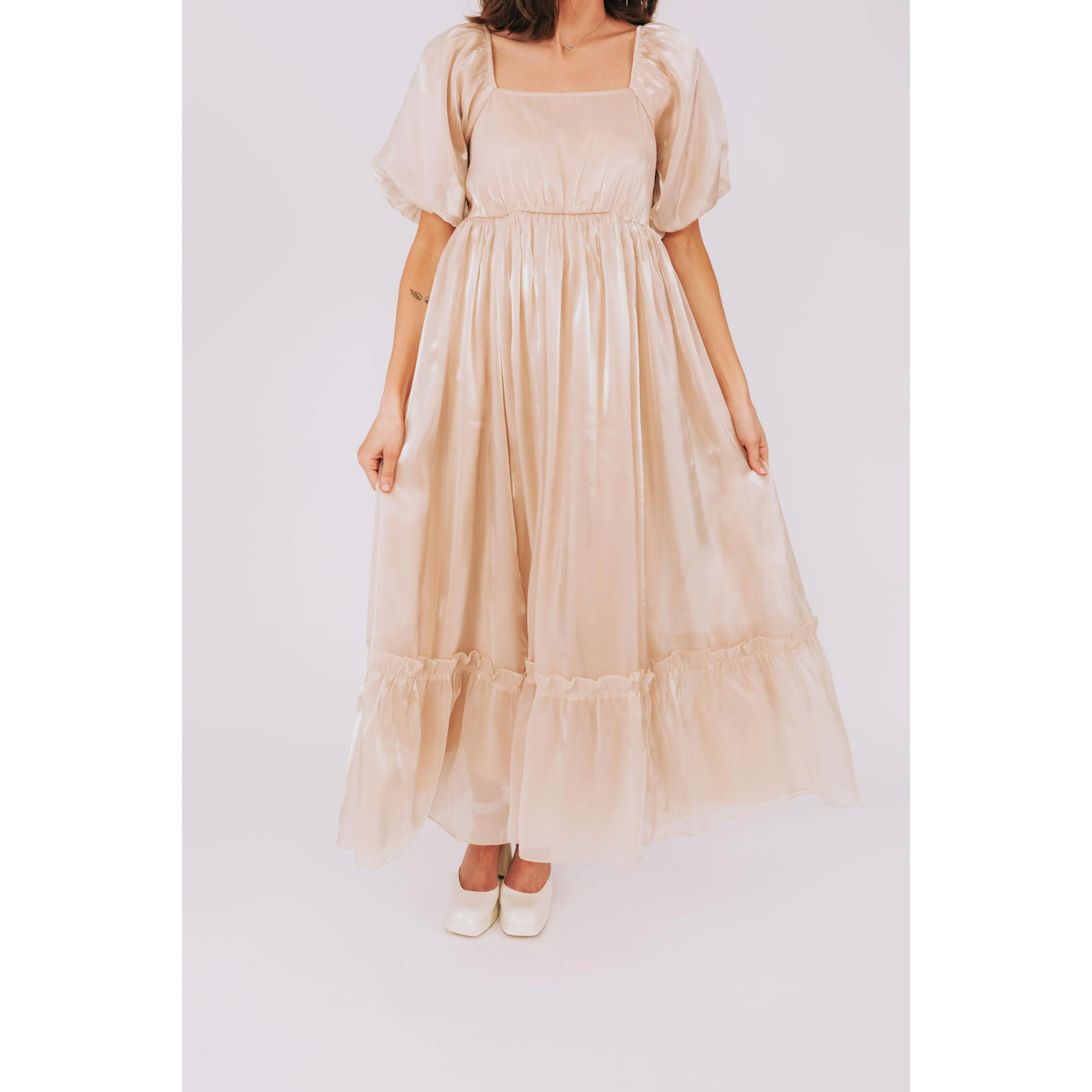 When in doubt, get a dress that shines! Say hello to our newest exclusive, the Different Life Dress, with just the right amount of shimmer, puff sleeves, maxi-length, + the perfect squared neckline! This is a dress that can take you anywhere. Size inclusive from XS-6XL.