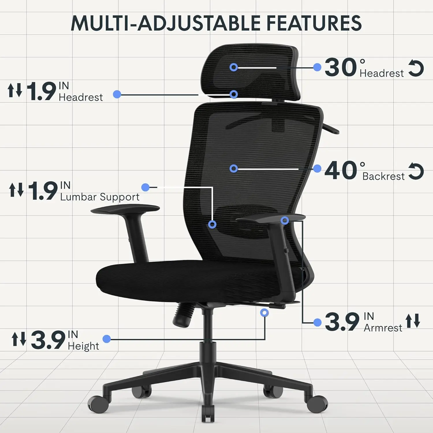 ·Ergonomic High-Back Chair: Engineered with precision ergonomic lumbar support, this chair offers consistent comfort, allowing you to stay energized throughout extended periods.