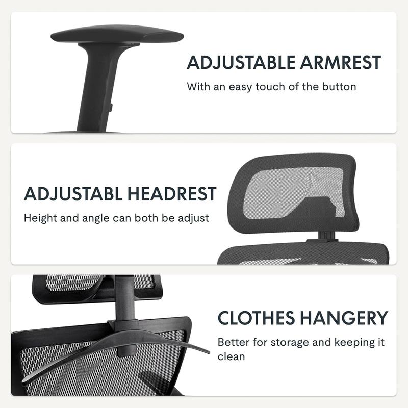 ·Customizable Comfort with Clothes Hanger: Adjust the seat height, headrest, backrest angle, and armrests to your preference for an optimal seating experience. Plus, it features a convenient clothes hanger to keep your space organized.