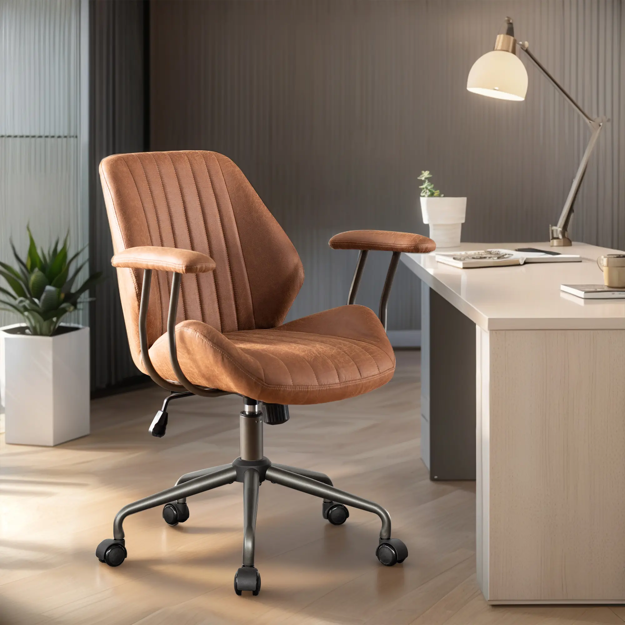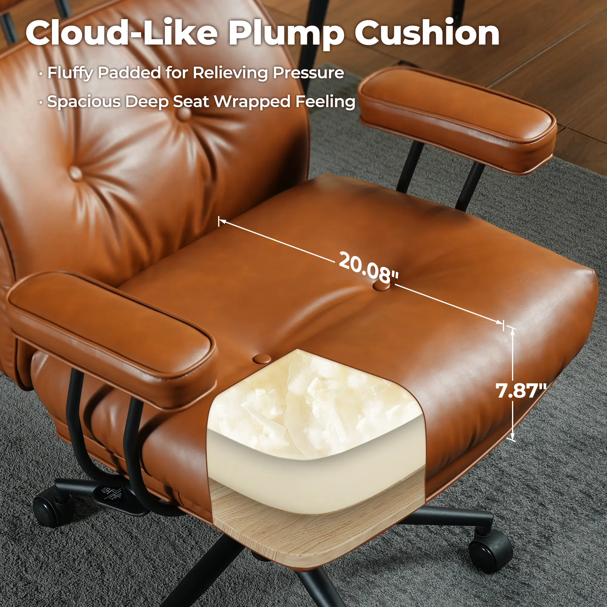 ·Mid-Century Modern Chair: This modern MCM office chair is made of high-quality faux leather fabric, unique retro and stylish design to add aesthetic style to your office, practical ultra-wide seat and high back support, 7.87 inches thick seat cushion and fluffy back cushion filled with fully cotton, providing comfortable soft cloud-like wrapped sitting experience