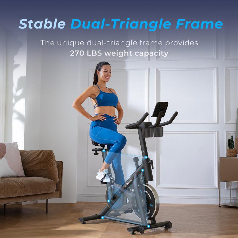 Made of durable thickened stainless steel, the 15 lbs flywheel and unique triangular frame structure ensures stability when riding. The maximum weight capacity can reach 270 pounds, providing you with a stable and safe riding experience. Suitable for all fitness levels.