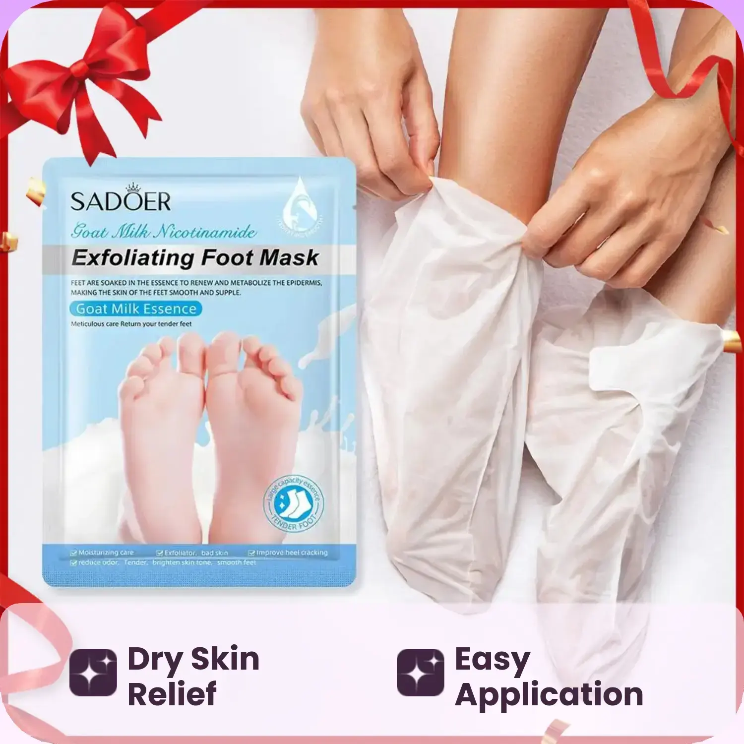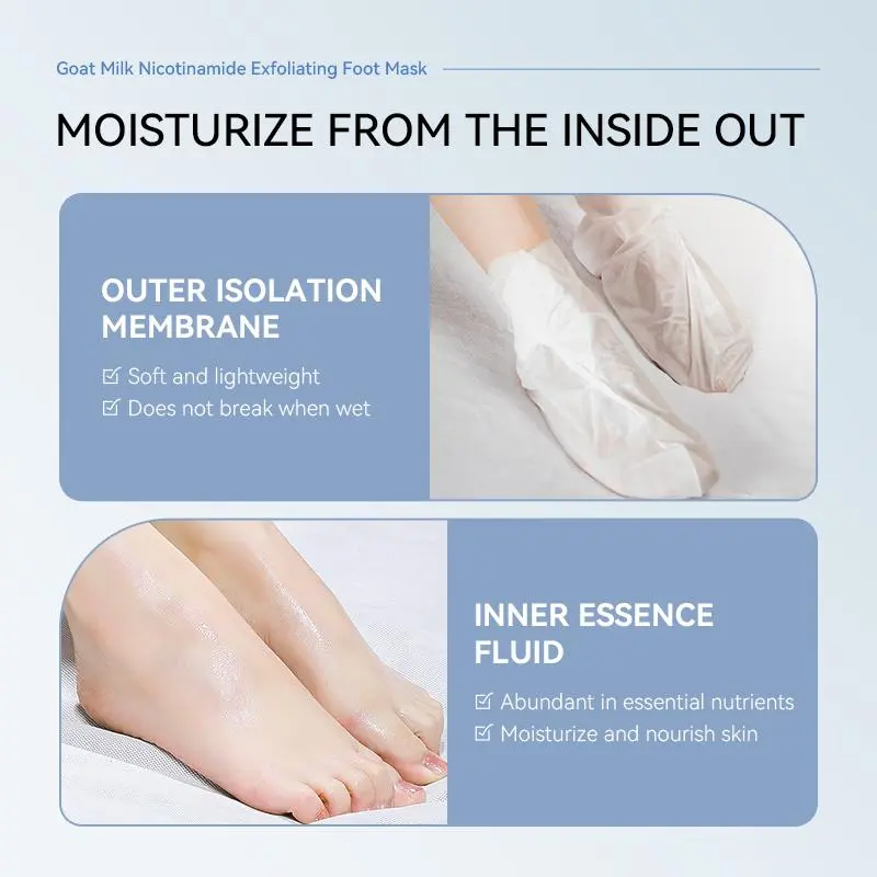 Hoy me llego el exfoliante para mis pies es como una mascara la compre porque mis pies pagan seco y Esta mascara trae escencia de leche de cabra