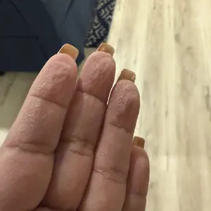 The directions on the box doesn’t say to wear gloves. This is what happened to my fingers from one use. The product left them scaly. I don’t recommend this product.