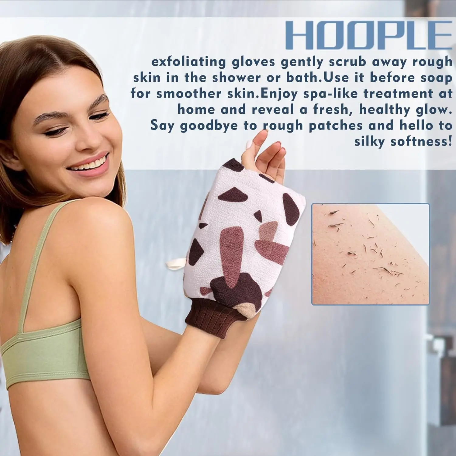 ·Softer, smoother skin: Our body scrub exfoliating gloves help remove dead skin and reveal softer, smoother skin. It's also great for skin ready for shaving. HOOPLE exfoliating and body exfoliating gloves also promote better absorption of skin care products.
