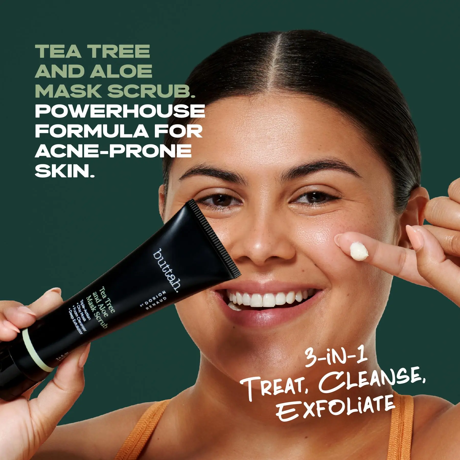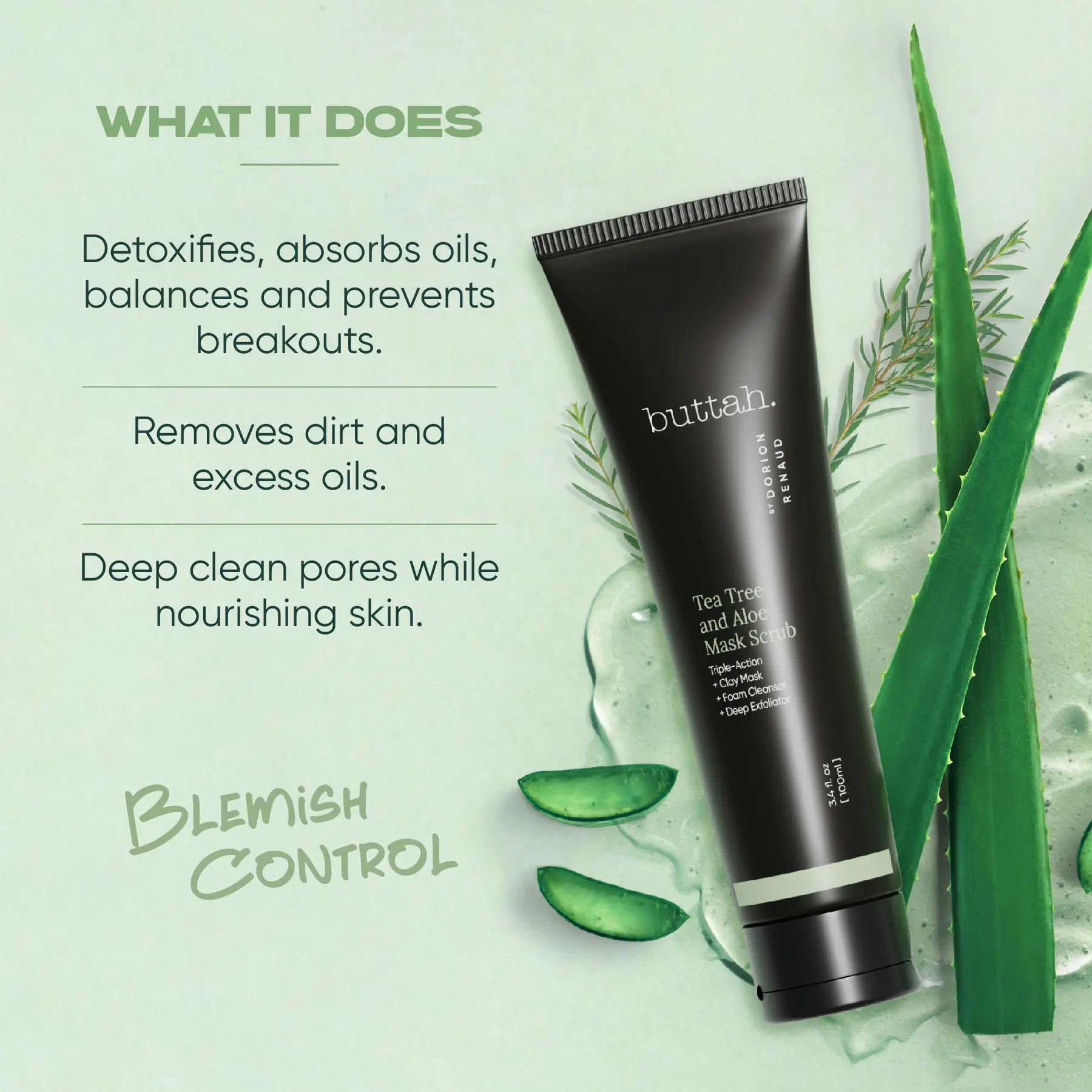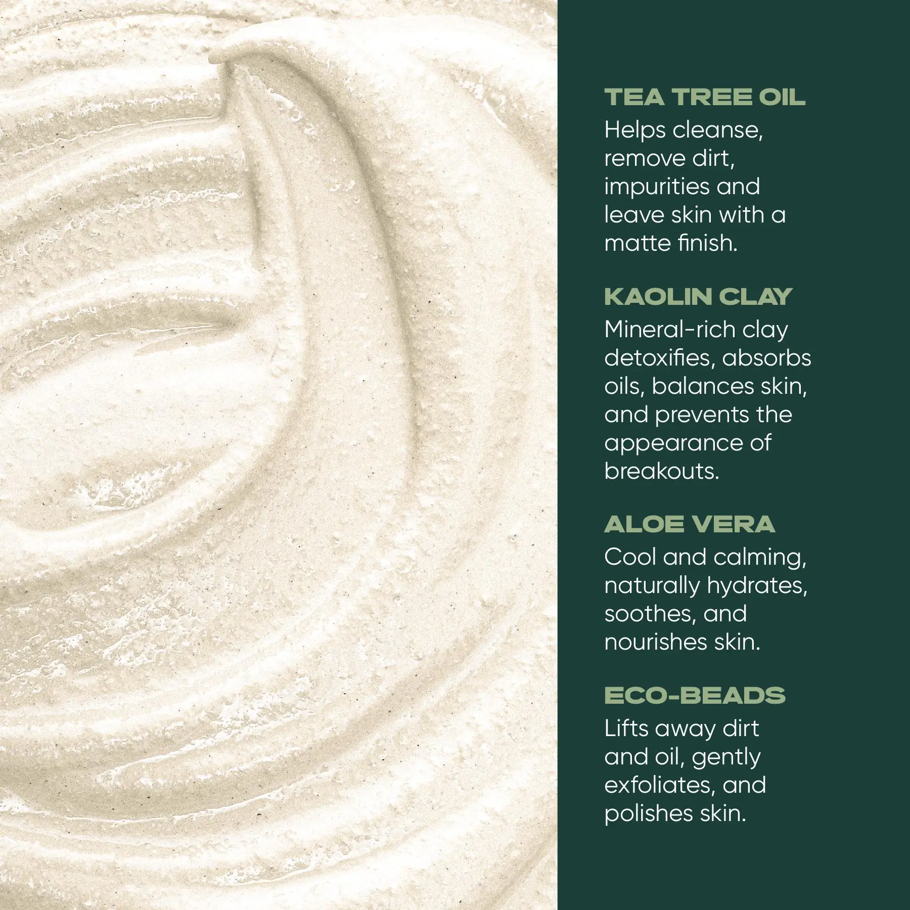 Transform your skincare routine with the 3-in-1 Tea Tree & Aloe Scrub/Mask—a versatile solution that cleanses, exfoliates, and calms your skin. Designed for blemish-prone and oily skin, this multitasking formula is also great for addressing razor bumps and uneven texture. Packed with powerful ingredients like Tea Tree Oil, Salicylic Acid, and Aloe Vera, it leaves your skin feeling refreshed, smooth, and balanced after every use. Product size is 3.4oz (100ml) and comes with a convenient squeeze tube with flip cap for easy, mess-free application. Use 2–3 times per week for best results.