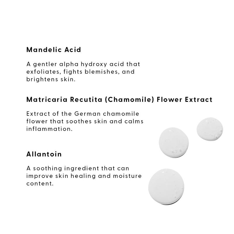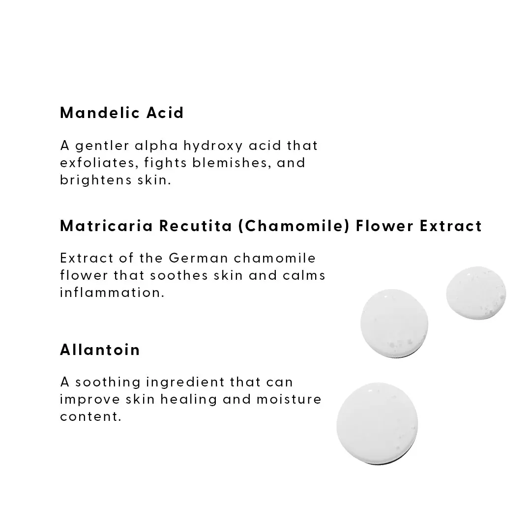 Get the skin-clearing power of AHAs without the irritation. 10% mandelic acid helps clear clogged pores while brightening and firming even the most stubborn or sensitive skin. It’s fortified with skin-soothers like chamomile, aloe, and allantoin to keep your skin calm and healthy.