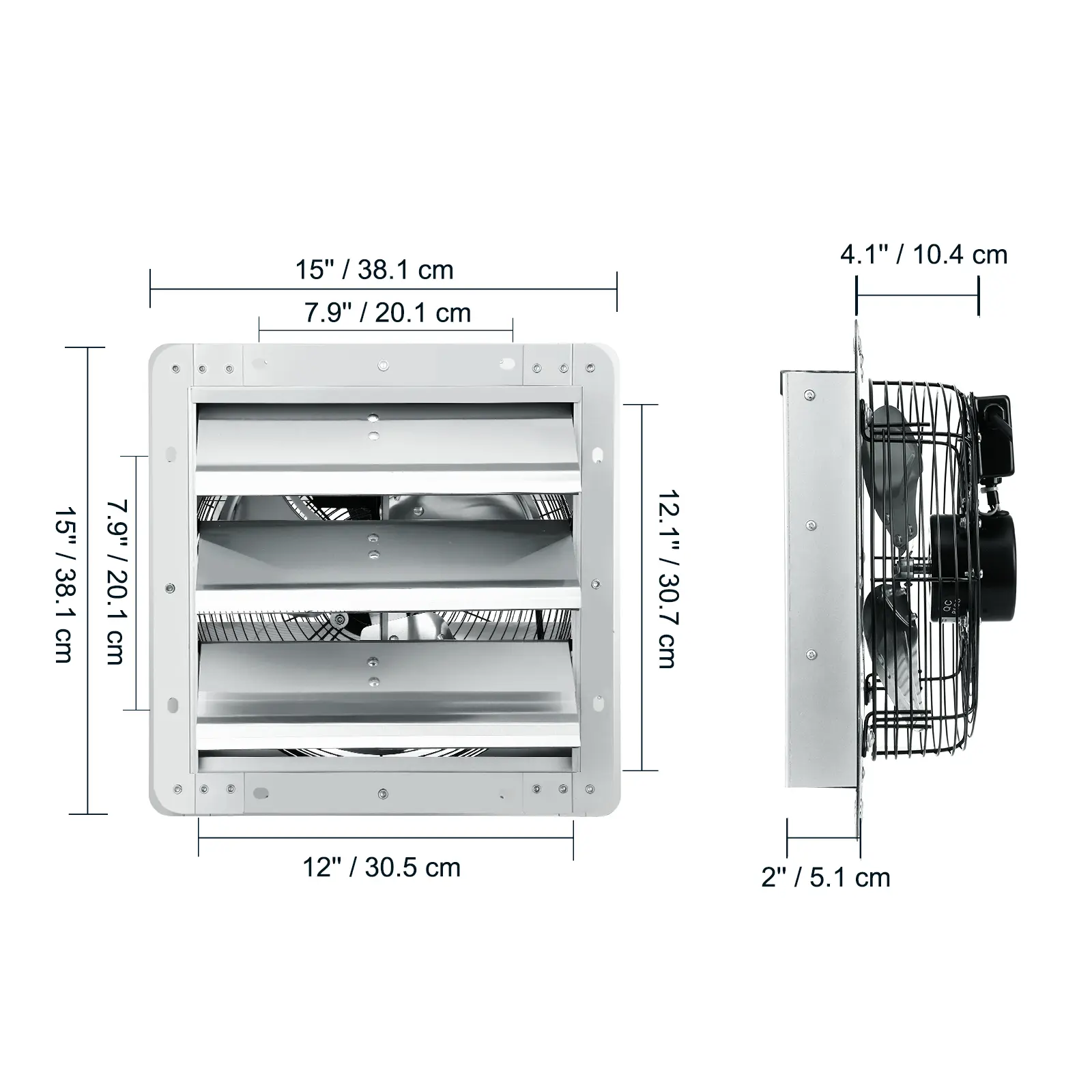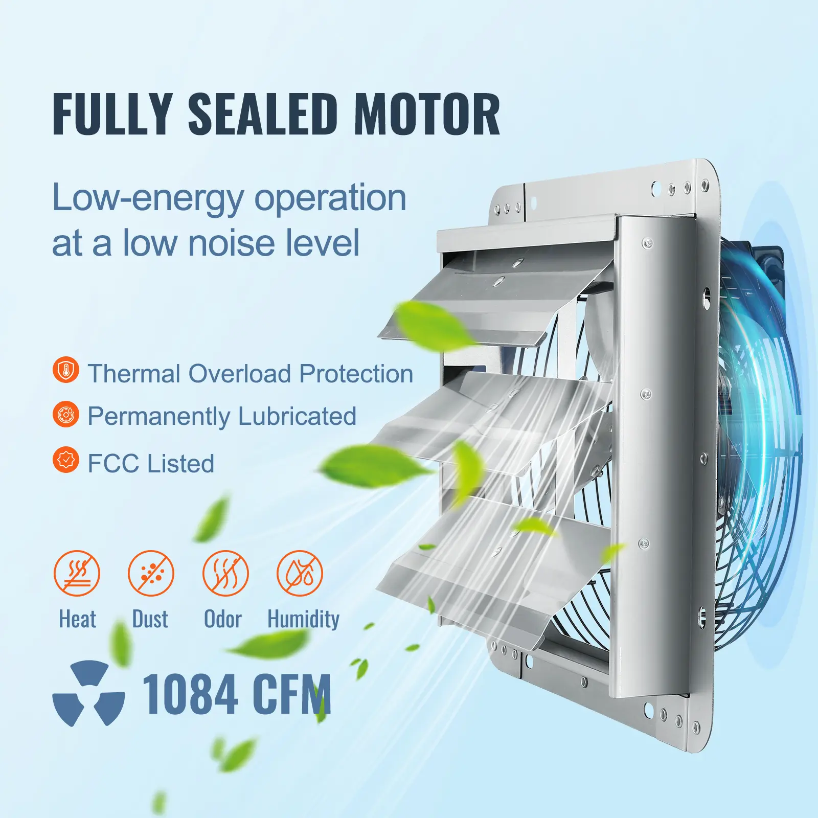 • Rust-proof Material: The shutter exhaust fan has a rugged all-metal structure and features a galvanized steel frame, aluminum alloy fan, and shutter, which is highly resistant to weather, liquid, and dust.