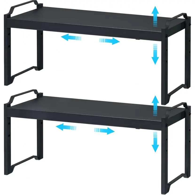 2 Pack Expandable Cabinet Countertop Shelves, Stackable Shelves Organizers For Kitchen Cabinet Countertop Storage, Adjustable Counter Cupboard Pantry Organizer Shelf Rack Stand, Length:20.5"