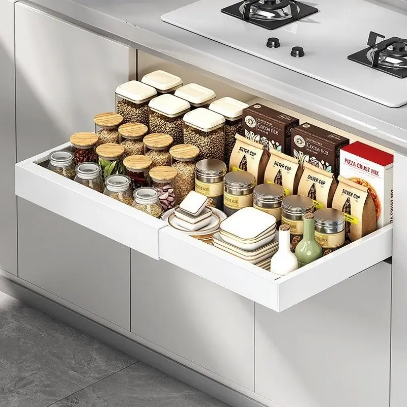 Pull out storage: slide rail design, easy to pull out, deep items can be easily accessed and stored, say goodbye to bending over to search.