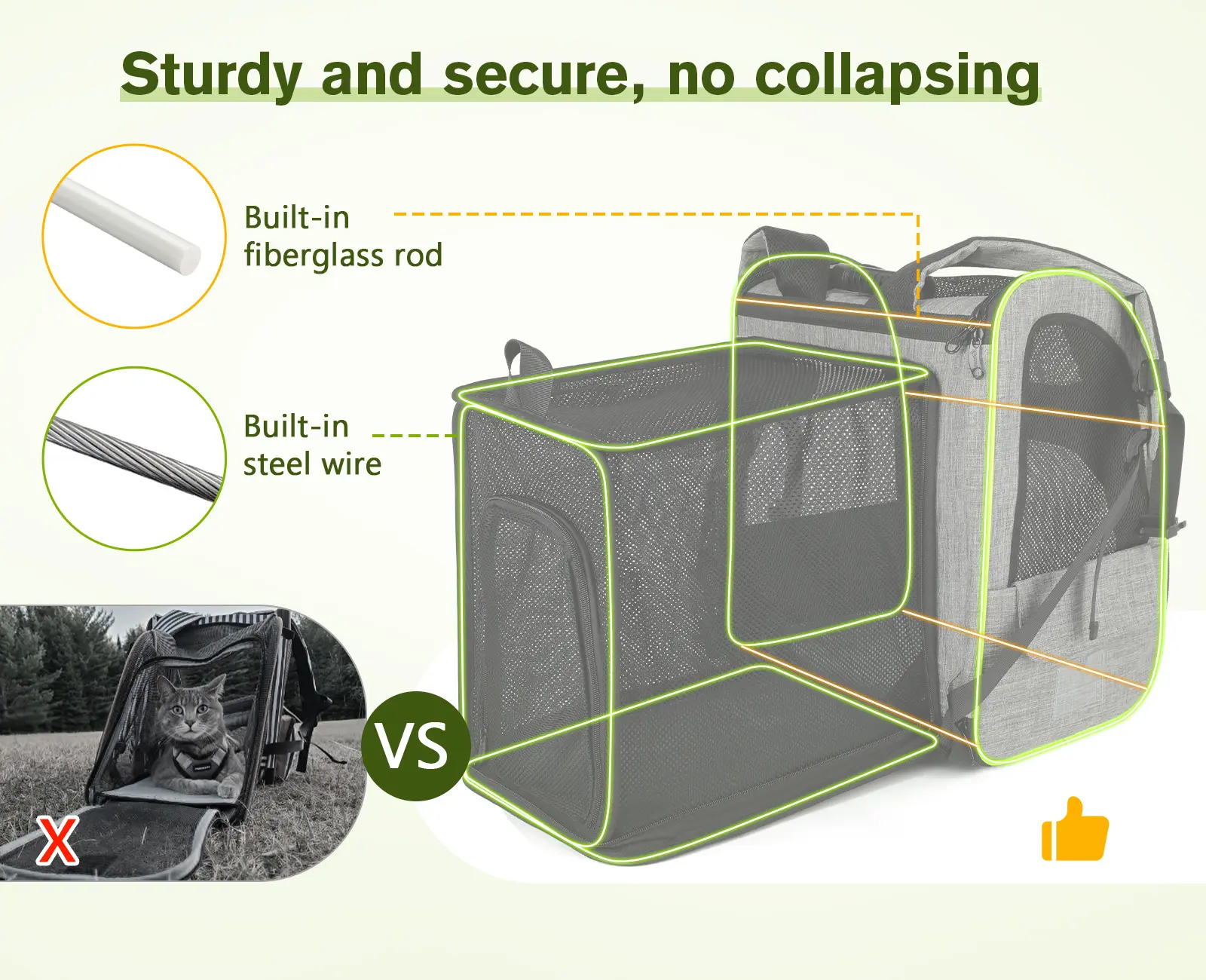 Fast shipping and great sturdy material! Bottom is strong enough to not bend or go sideways so my bunnies legs can rest easily. And has a good amount of room! My Loki bunny loves this backpack so much that when I took her out she went right back in for another ride! 😂