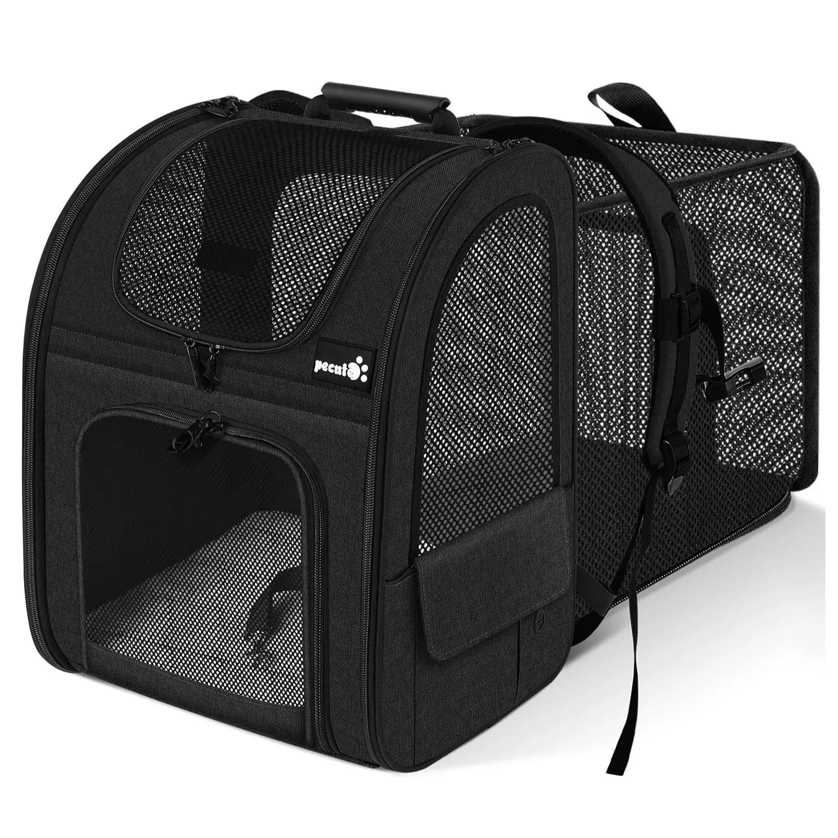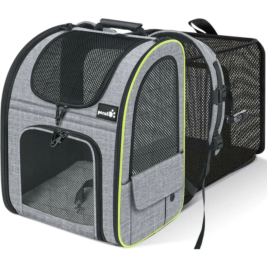 this carrier is amazing! my furbaby comes with me on bikerides now, to the beach, hiking! i’ll share some beach photos and i just wanna say the expanded version is phenomenal if you are nervous about your cat liking it all of the sides unzip and plenty of pocket space for those who may carry more !!