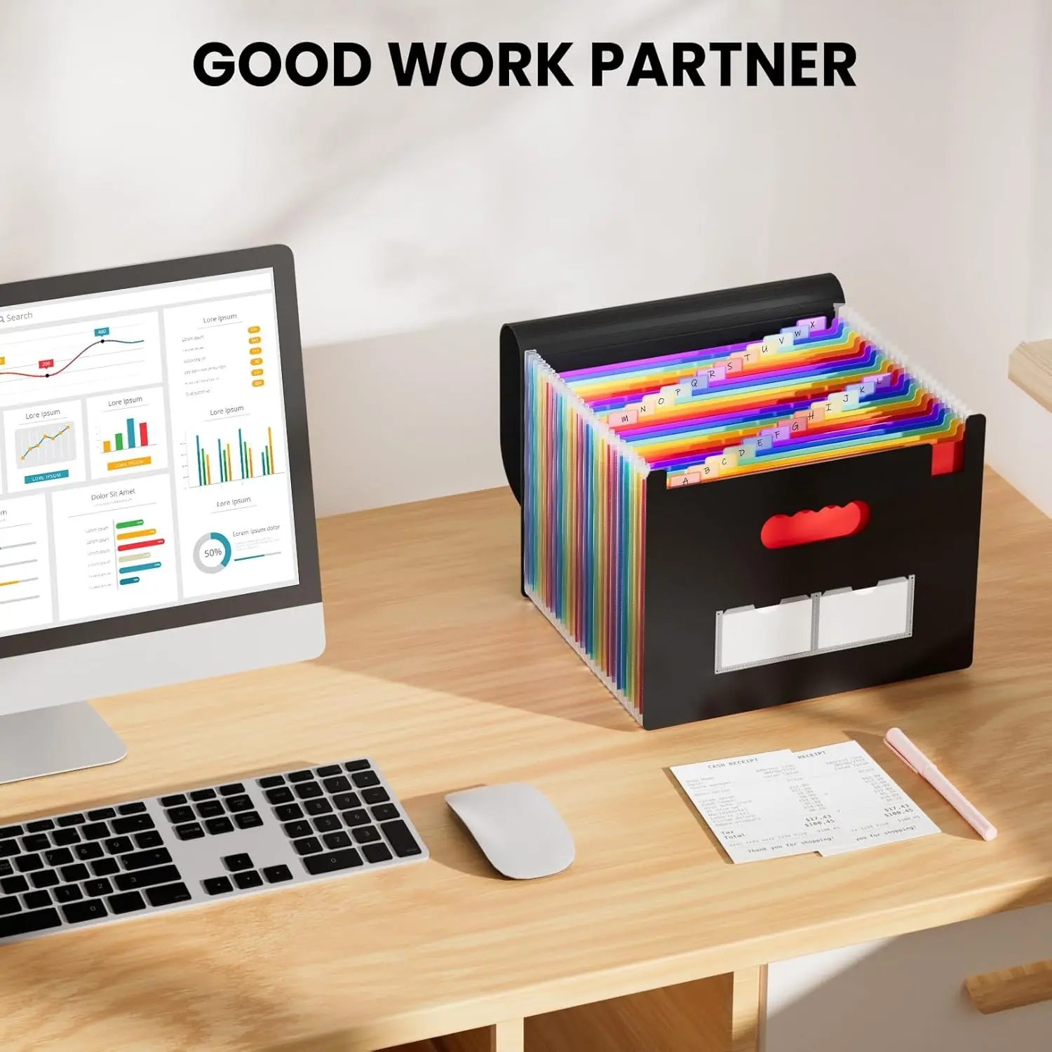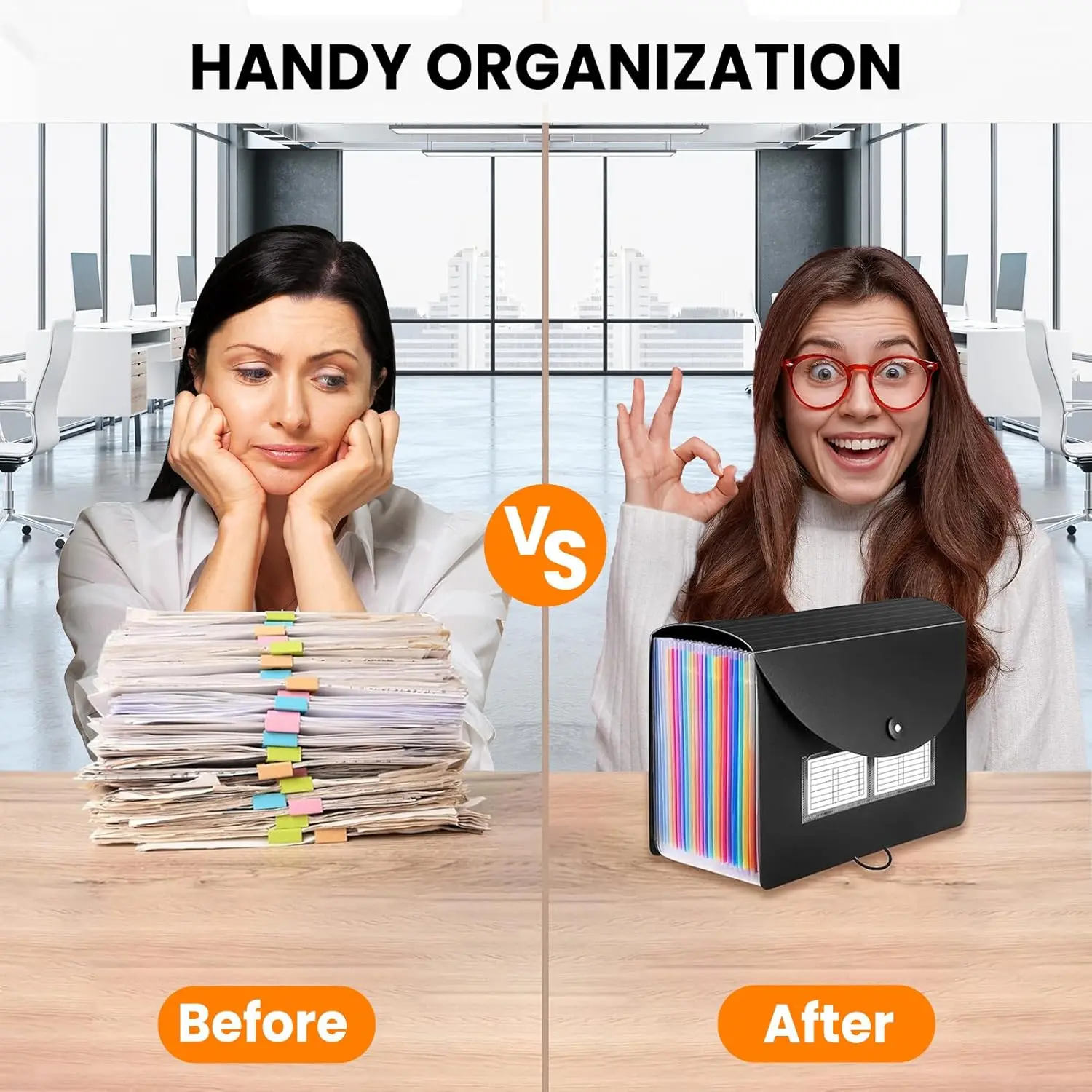 ·Handy organization & Easy lookup: Expandable file folder has 24 pockets designed for keeping our paperwork organized. Accurately classified storage in the specific color slot and labeled with tabs, so it is easier to find the papers what is needed.