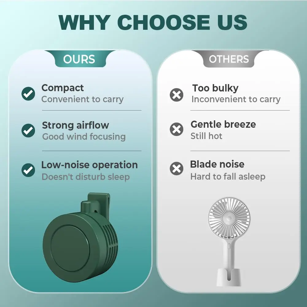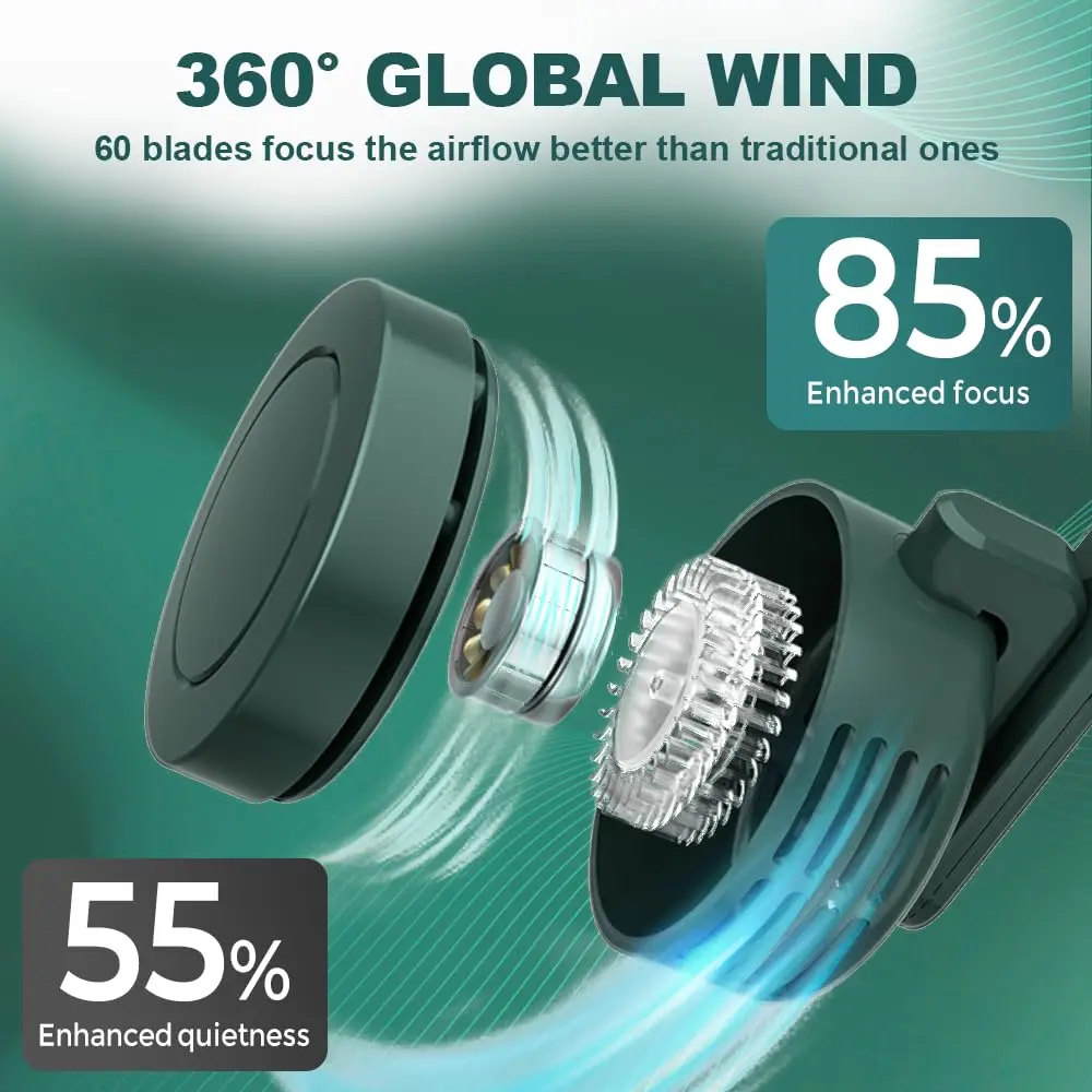 【Powerful and Quiet Cooling Performance】Our upgraded small cyclone clip fan can provide 5100RPM airflow while maintaining silent operation (