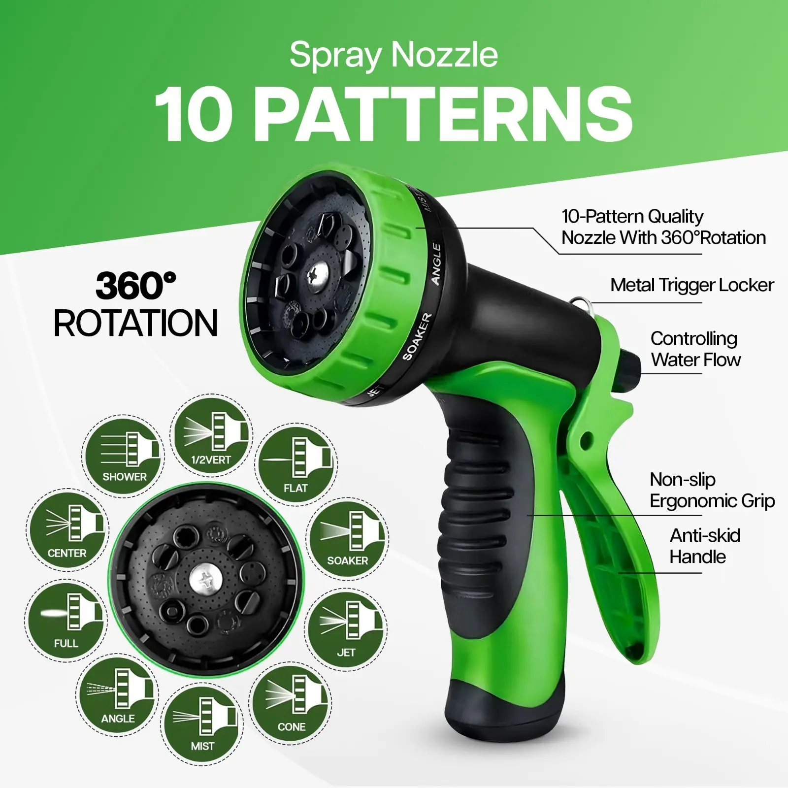 - Product use: car washing, watering, cleaning