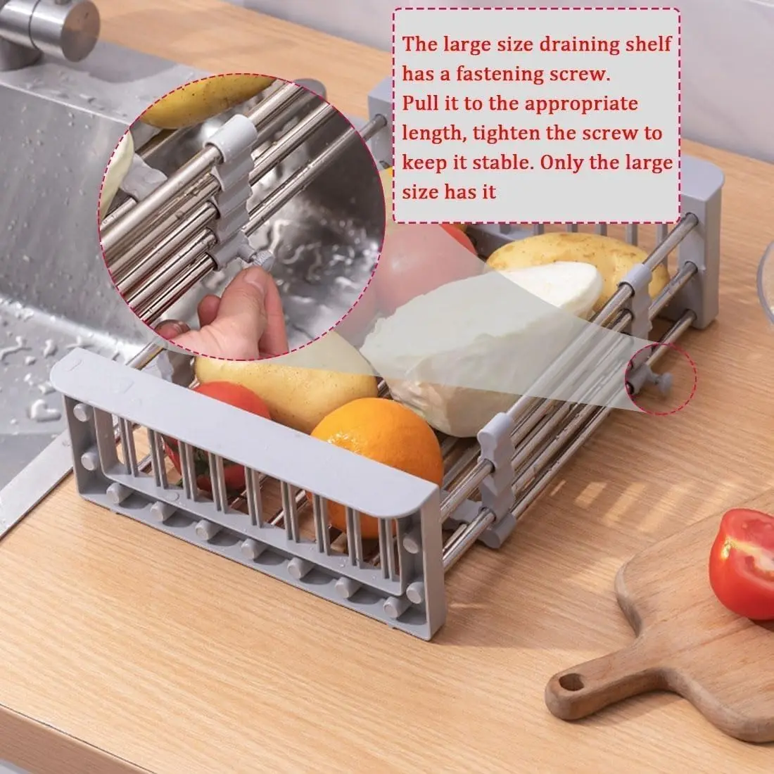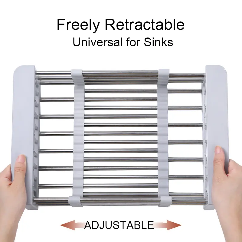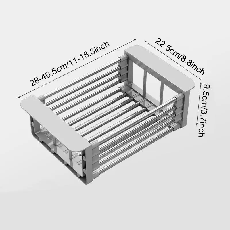 expandable & Adjustable Design– This Extend Kitchen Sink Drain Basket stretches from 11.6 to 18.2 to fit most sinks/counters. Rotating screws lock the width securely, ensuring stability for drying dishes, rinsing veggies, or organizing utensil