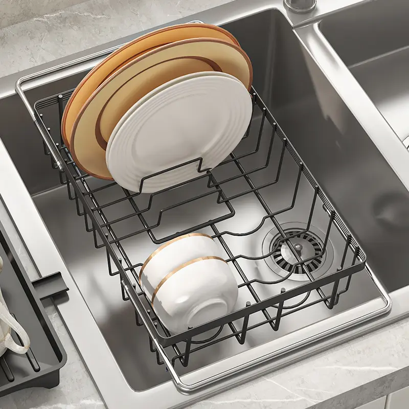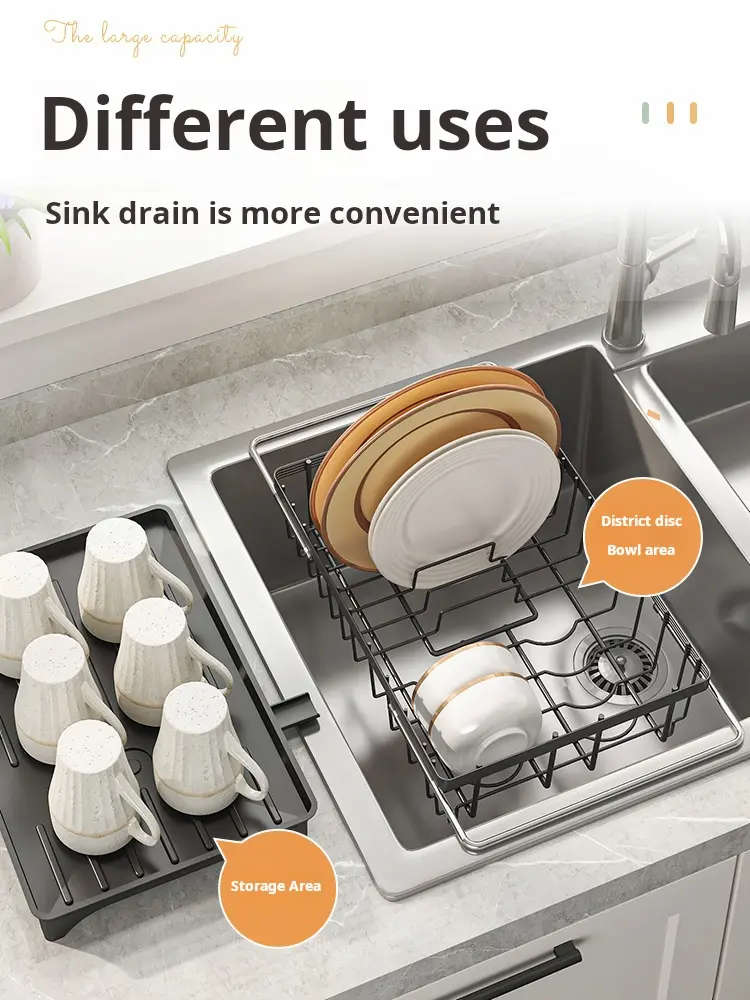 ·Multi-purpose: Suitable for fruits and kitchenware, Easily stretches to fit most sink widths